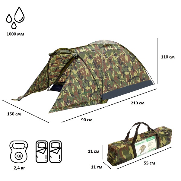 Палатка Green Glade Army 2 предназначена для отдыха на пляже или природе. Тент защищает от солнечных лучей в жаркую погоду.ХарактеристикиТип