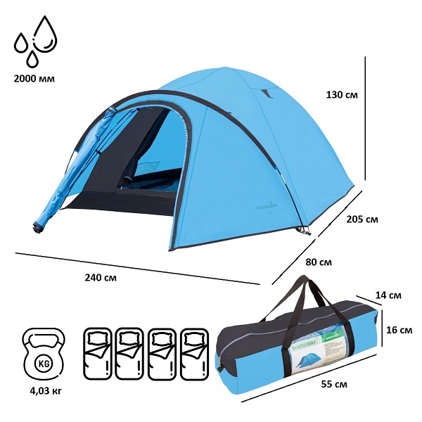 Куполообразная палатка Green Glade Nida 4 оснащена компактным тамбуром. Внутри предусмотрена москитная сетка, вход с защитой от непогоды и система вентиляции.ХарактеристикиТип