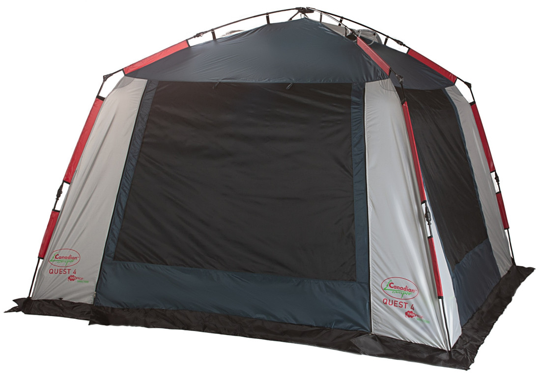 Quest 4 — это быстросборный квадратный тент-шатёр, рассчитанный на компанию из 4–6 человек. Его стенки сделаны из антимоскитной сетки, которая при необходимости закрывается водонепроницаемыми шторами — внутри становится сухо и спокойно даже во время дождя.ХарактеристикиТип