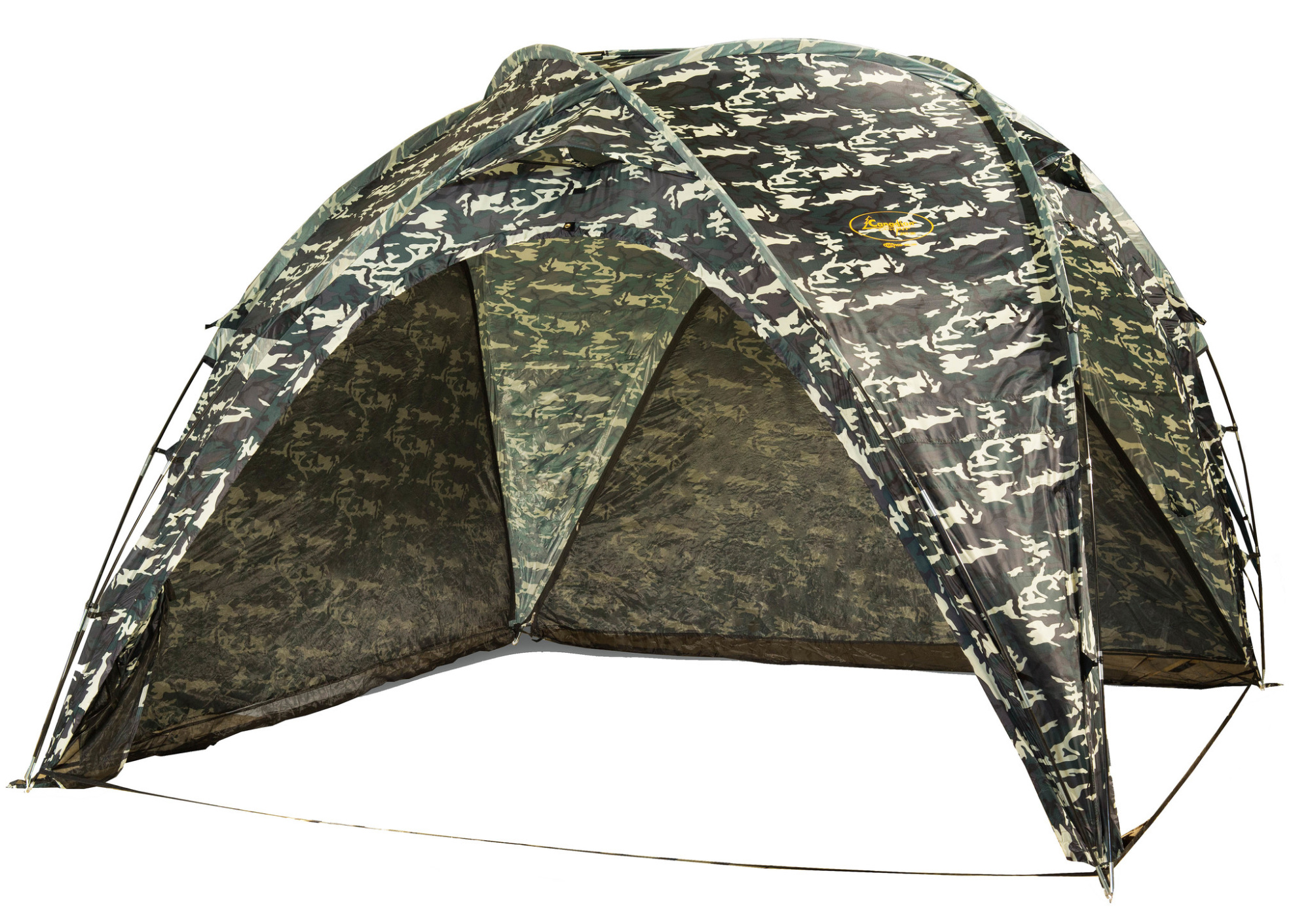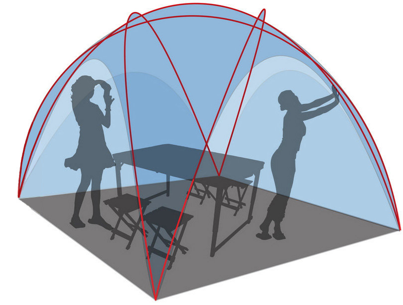 Canadian Camper SPACE ONE — это шатёр на каркасе из фиберглассовых дуг сферической формы. Его используют не только как тент для отдыха на природе, но и как экспедиционную палатку — например, геологи и археологи ценят его за надёжность в полевых условиях. Сборка простая: дуги продеваются в кармашки тента, фиксируются в люверсах, а крючки тента защёлкиваются на дугах. Благодаря такой конструкции шатёр легко собирается и разбирается, а сферическая форма обеспечивает хорошую ветроустойчивость.ХарактеристикиТип