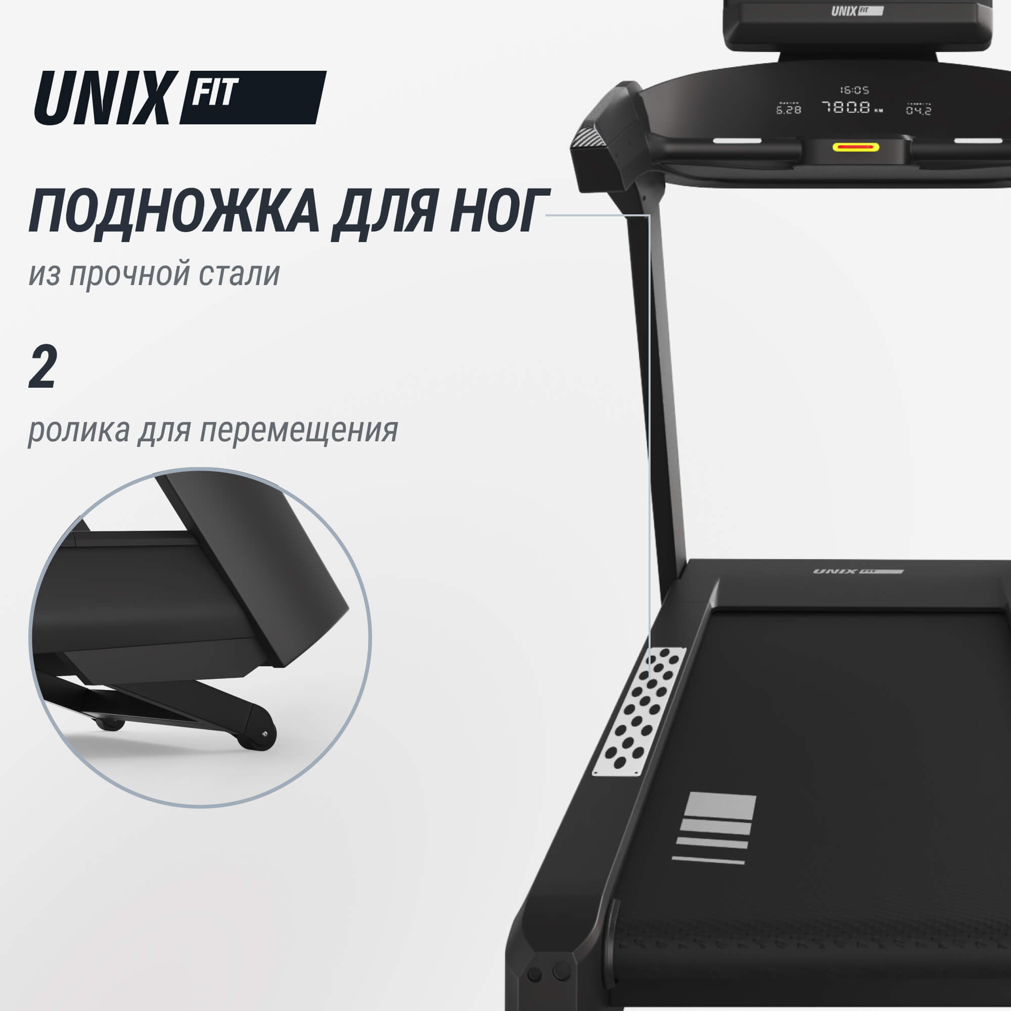 UNIX Fit T-1350 PRO — это надежная и технологичная беговая дорожка, созданная для бесперебойной работы и обеспечения эффективных, безопасных и комфортных тренировок в условиях высокой посещаемости.ХарактеристикиТипПрофессиональная ВидКлассическая Страна БрендаГермания Вес пользователя кг.180 ?Система нагрузкиМагнитная: с ручным изменениям нагрузки, Электромагнитная: с электронным изменениям нагрузкиЭлектрическая ?Ширина полотна см.Чем шире полотно, тем больше комфорт при беге58 ?Длина полотна см.Чем выше человек, тем длинее должно быть полотно158 Полотноортопедическое антискользящее беговое полотно ORTOMAX™ (толщина 3 мм) коммерческого класса Система смазки бегового полотнаавтоматическая + ручная Постоянная мощность двигателя (л.с.)5 Пиковая мощность двигателя (л.с.)7 Система охлаждения двигателяЕсть Уровень шума двигателяНизкий Дека (мм.)22 Измерение пульсаЕсть Расположение датчиков пульсасенсорные датчики на поручнях ?Система амортизацииДаннас система снижает нагрузку на суставы и риск получения травмЕсть ?Количество программФункция личного тренера, которая изменяет нагрузку и другие параметры для наибольшего эффекта27 Дисплейнаклонный сенсорный TFT 25" Показания компьютераскорость, расстояние, время, калории, шаги, угол наклона, пульс ?ДинамикиДинамики для воспроизведения музыки и др.Есть MP3Есть ?BLUETOOTHДля использования функции скачайте приложение BLUETOOTH APP через App Store или Google PlayЕсть Wi-FiНет USBЕсть ?Транспортировочные роликиДля перемещения тренажера в место храненияЕсть ?Изменение угла наклонаИзменение наклона полотна/рампы, имитирует подъем в горуЭлектрическая ?Компенсаторы неровности полаРегулировка тренажера при невроной поверхностиЕсть Угол наклона0-22% Скорость (км/ч)22 ?ВентиляторВентилятор для охлаждения во время тренировкиЕсть ?Подставка для бутылкиОтсек на тренажере, для хранения шейкера или спортивной бутылки.Есть ?Подставка планшета/телефонаПодставка для планшета, телефона, книги и др.Есть ?Воспроизводите реальные пробежкиВоспроизведение реальной пробежки через Google Maps™Есть Особенностьключ безопасности, противоскользящие накладки для ног, поддержка Airplay (поделиться экраном), функция USB зарядки, функция энергосбережения Спецификации программ24 программы + 3 пользовательские программы Инструкция по сборкеЕсть, на русском языке Инструмент для сборкиЕсть Питаниеот сети 220В Энергосбережениеесть (класс А+) Язык интерфейсарусский Зарядка мобильного устройстваЕсть Габариты206 х 96 х 172 см Размер упаковки в см (Д*Ш*В)Упаковка №1: 104,5 х 100 х 30,5 см, упаковка №2: 97,5 х 215,5 х 32,5 см Вес изделия кг160 Вес в упаковке кгУпаковка №1: 31,4 кг, упаковка №2: 183 кг Гарантия2 года ЦветЧерный ПроизводительКитай ИмпортерООО "Централ Спорт" г. Минск 220012, ул.Чернышевского 8 каб. 23 Документы