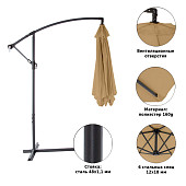 Чтобы понять, какой диаметр (ширина) нужен, измерьте площадь, которую он должен будет покрыть и определите, сколько людей будут под ним находиться. Если это зонт от солнца для частных участков, который должен покрыть большой семейный стол и кресла, нужен диаметр от 2 метров. Если это зонтик для пикника на двоих, хватит купола 1,7 метра.