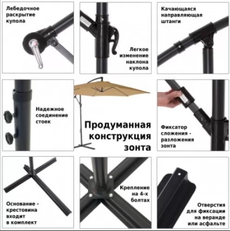Большой зонт Green Glade станет надёжной защитой от солнца на даче, загородном участке или у бассейна, создавая комфортную тень для вас и ваших детей. Купол легко открывается с помощью лебёдки, а благодаря боковому расположению стойки под зонтом можно свободно разместить любую пластиковую мебель — от шезлонга до обеденного стола. В комплекте идёт основание-крестовина: для устойчивости на него устанавливаются бетонные утяжелители (приобретаются отдельно) либо крестовина прикручивается через имеющиеся отверстия к полу.ХарактеристикиСтрана Бренда