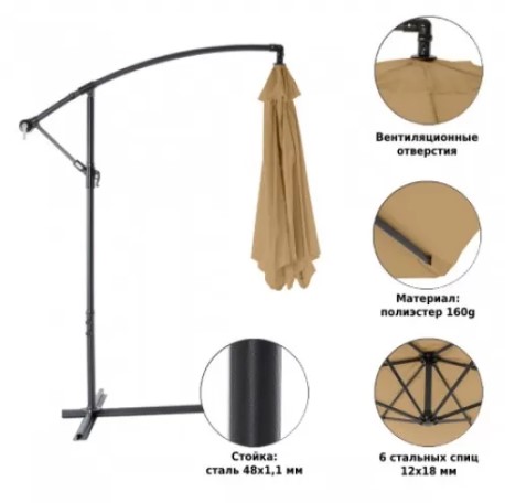 Китай Диаметр291 см. ДополнительноМакс.угол наклона - 50 Материал190T эпонж с чёрным покрытием ПодставкаЕсть Дугифибергласс 6 мм ?Защита от УФ лучейЗащита полотна от ультрафиолетаЕсть Количество спиц6 Материал стойкистальная 48x1 мм Наклон куполаЕсть Материал куполаполиэстер 180 гр/м2 Толщина спицфибергласс 7 мм Утяжелители в комплектеНет Высота общая253 Размер в сложенном виде253 см Вес в упаковке кг12.9 Гарантия12 месяцев ЦветБежевый ПроизводительZHEJIANG SHANGDE INDUSTRY&TRADE CO.,LTD ИмпортерООО "Централ Спорт" г. Минск 220012, ул.Чернышевского 8 каб. 23 -