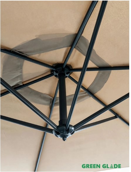 Большой зонт Green Glade создан для комфортного отдыха на даче, у бассейна или загородного участка, надежно защищая от солнца и создавая тень для всей семьи. Механизм с лебедкой позволяет легко открывать купол, а боковая стойка освобождает пространство внизу для любой пластиковой мебели — от шезлонгов до обеденного стола. В комплект входит крестовина-основание, которую для устойчивости можно закрепить бетонными утяжелителями (приобретаются отдельно) или прикрутить к полу через специальные отверстия.
