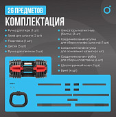 Диски: 10 кг-8 шт, 5 кг-4 шт, 2.5 кг-4шт, 1.25 кг-2 шт.