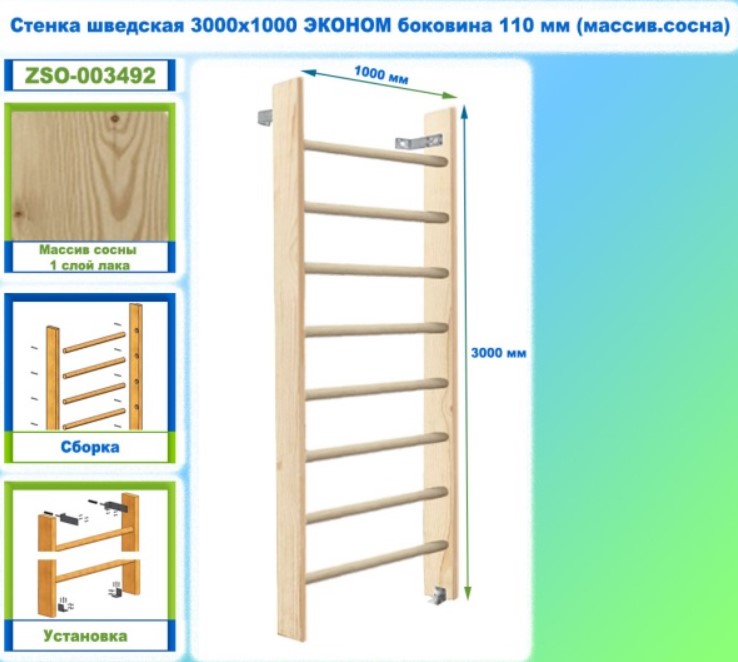 Шведская стенка деревянная Dinamika ZSO-003492 ЭКОНОМ, 300х100 см (массив.сосна)