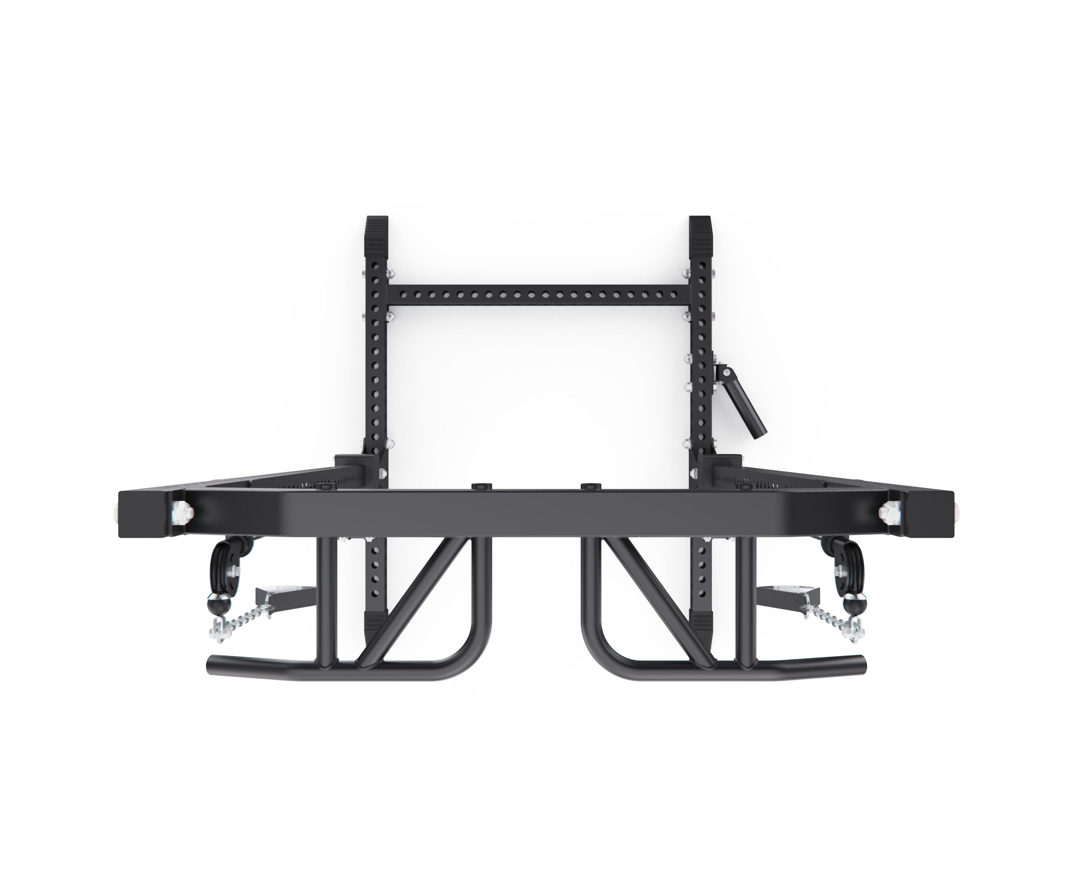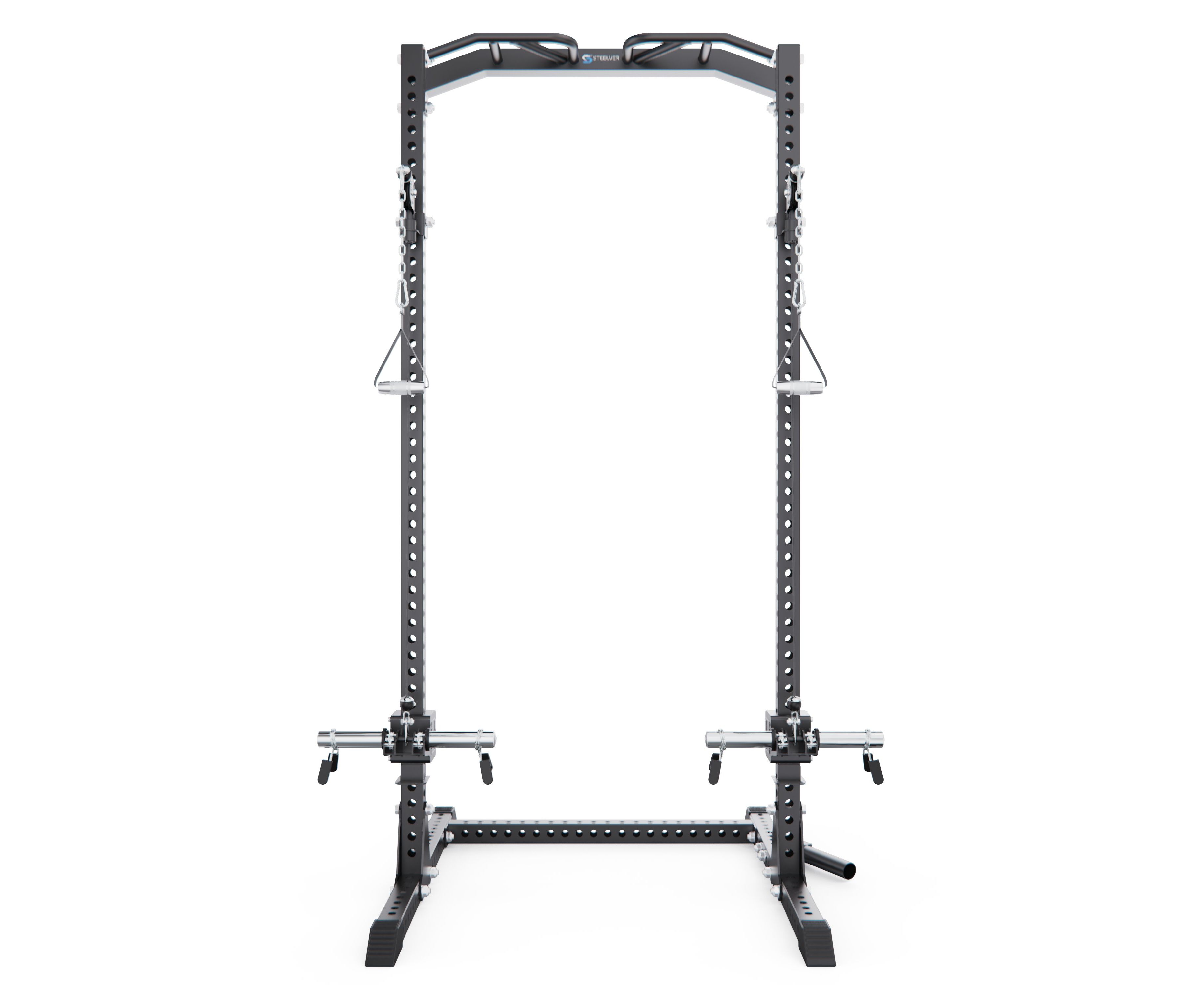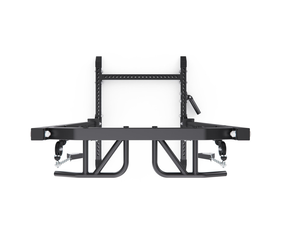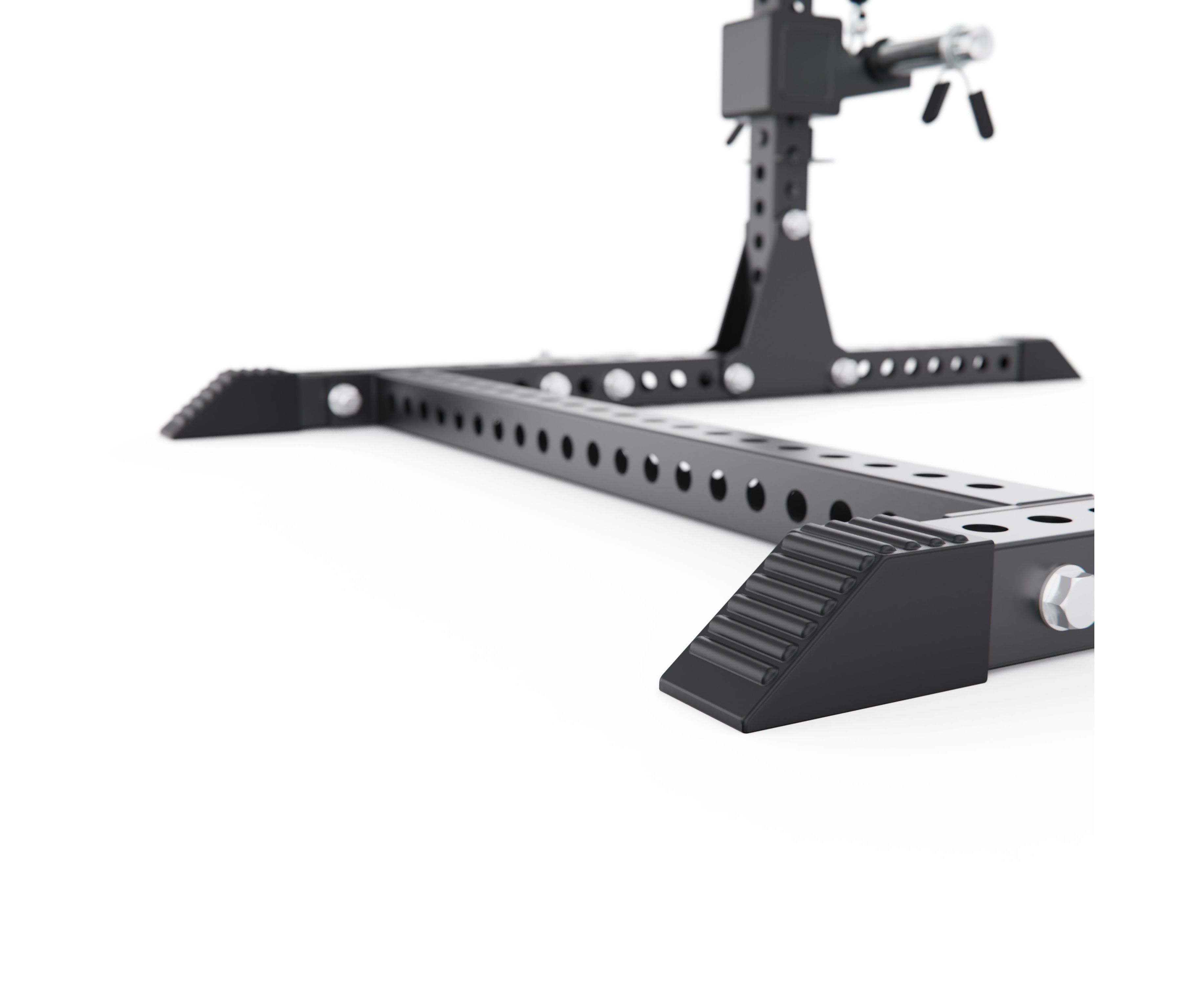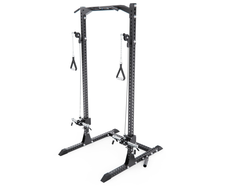 Тренажер представляет собой полноценный тренировочный центр. Четыре посадочных места с диаметрами 28 и 50 мм обеспечивают совместимость с различными типами блинов для упражнений в раме. Встроенный двусторонний кроссовер (верхний и нижний блоки) позволяет прорабатывать любые мышечные группы с плавной и регулируемой нагрузкой. Специальное отверстие для грифа выполняет функцию лэндмайна для жимов и тяг с естественной амплитудой. Дополняет возможности многопозиционный турник для подтягиваний разным хватом и тренировки мышц спины.