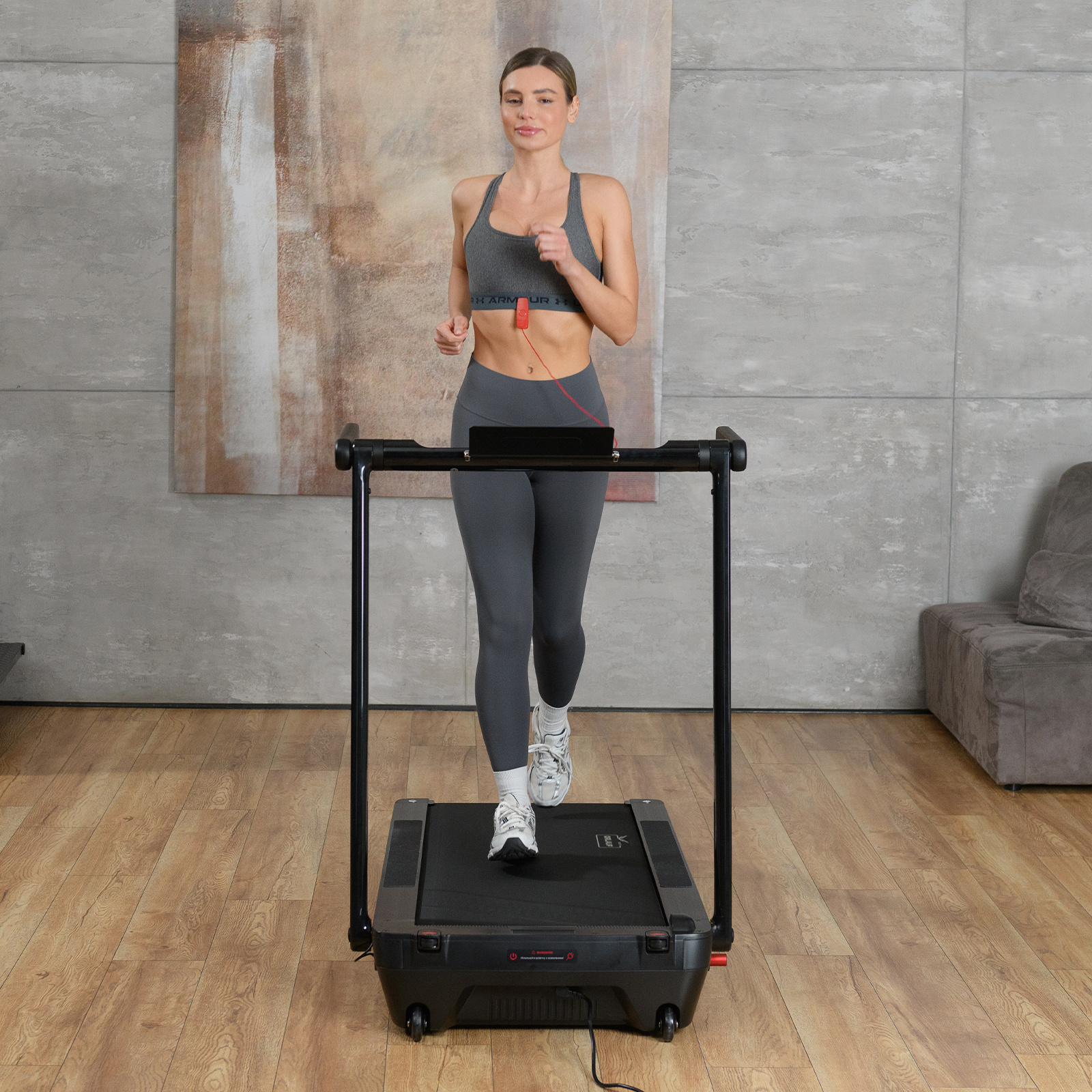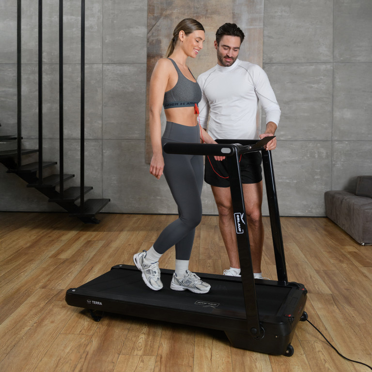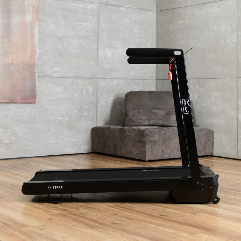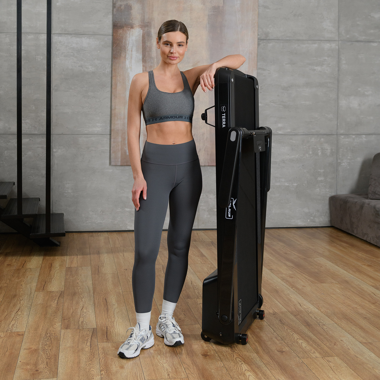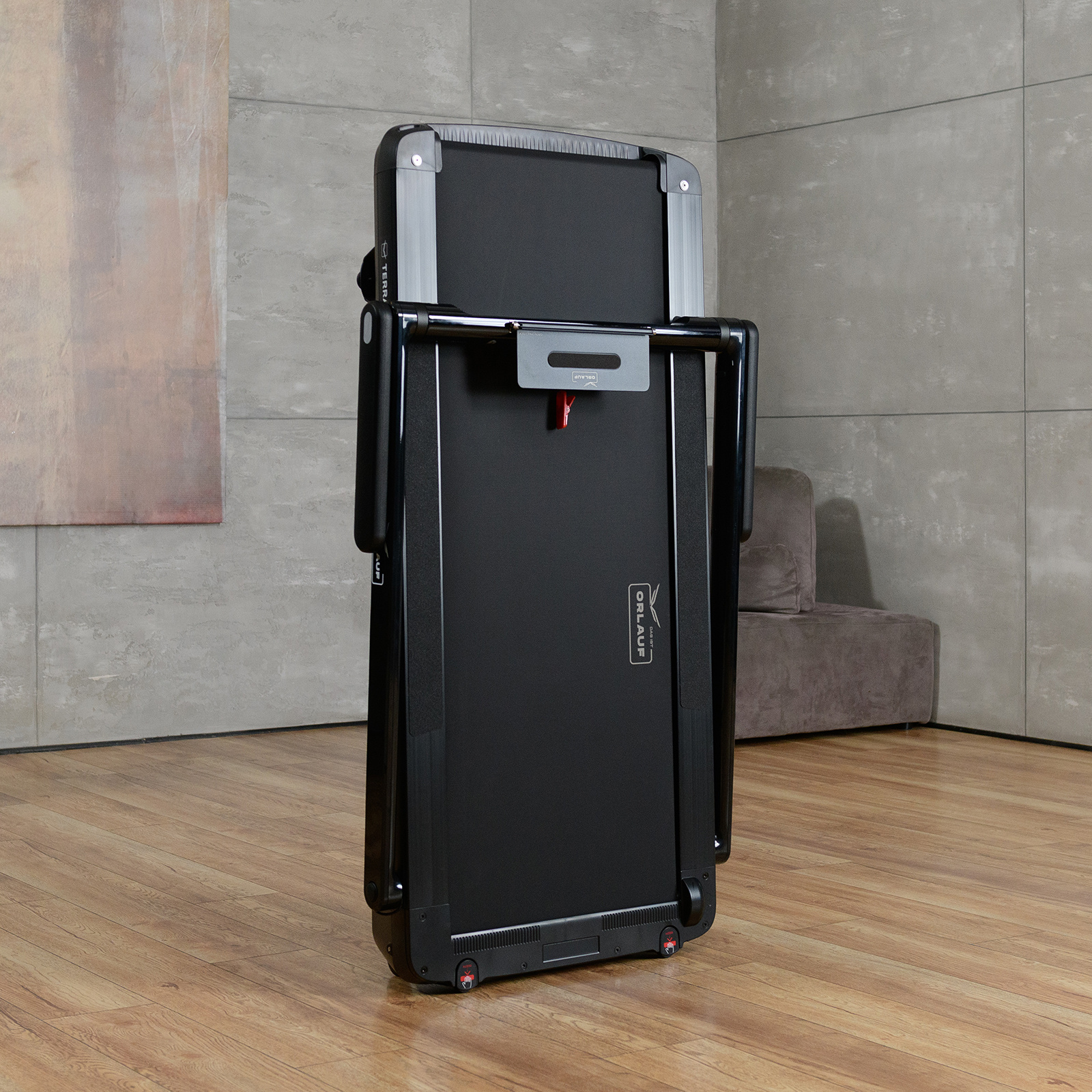 Orlauf Terra - это инновационный тренажер, который открывает новую эпоху занятий спортом дома. Его стильный дизайн и передовые технологии делают его идеальным спутником в пути к здоровому образу жизни. Это устройство не занимает много места в доме, но обеспечивает бесконечные возможности для тренировок. Orlauf Terra разработан для эффективного и комфортного занятия спортом без необходимости покидать дом. Современные апартаменты требуют компактных решений. Поэтому мы укомплектовали Orlauf Terra удобной системой складывания, которая позволяет хранить тренажер как вертикально, так и горизонтально. Orlauf Terra представляет собой идеальное сочетание элегантности и практичности, объединяя в себе функциональность тренажера и стильную гостиную. Теперь вы можете наслаждаться тренировкой и отдыхом в уютной обстановке, не теряя при этом места в вашем домашнем пространстве. Двигатель Machtvoll, основа сердца Orlauf Terra, обладает мощностью 2,5 л.с. и обеспечивает стабильную работу даже во время интенсивных тренировок. С возможностью регулировки скорости от 1 до 14 км/ч, он подстраивается под любой уровень подготовки, обеспечивая мощь и плавность движений. Полотно SchrittBind размером 130 х 48 см создает пространство для свободы движений и отличное сцепление с поверхностью. Благодаря Orlauf Terra каждый шаг становится уверенным и комфортным, позволяя вам полностью сконцентрироваться на тренировке. Ваш комфорт - главное. Система Vortex эффективно уменьшает нагрузку на суставы и позвоночник, благодаря четырем цилиндрическим и четырем плоским эластомерам, работающим в гармонии для мягкости каждого шага. Электронная регулировка угла наклона до 12% разнообразит тренировки и позволит вам почувствовать себя на пересеченной местности. С Orlauf Terra каждое занятие станет увлекательным путешествием к лучшей версии себя. Умные технологии включают в себя LED-дисплей и 15 программ тренировок. Приложение FitShow превратит тренировки в захватывающее приключение, где вы сможете отслеживать прогресс и участвовать в виртуальных забегах. Orlauf Terra, великолепный фитнес-помощник, обеспечивает точный контроль пульса в сочетании с кардиопоясом Polar, при этом добавляя удобство зарядки устройств через USB-разъем. Его стильная элегантность в черном цвете Obsidian Black и встроенные колонки с Bluetooth-подключением делают тренировки приятными и эффективными. Orlauf Terra — это не просто тренажер, а инновационное решение для домашних занятий, сочетающее в себе стиль, функциональность и удобство.*