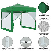 Каркас: Наружные стойки 32х32х0,8мм., Внутренние стойки 28х28х0,8мм., Поперечные перекладины 13х25х0,8мм