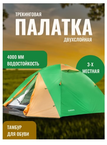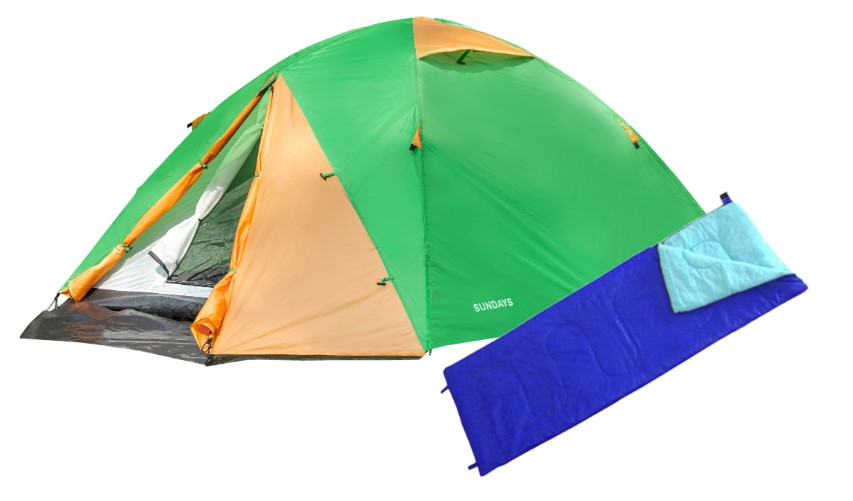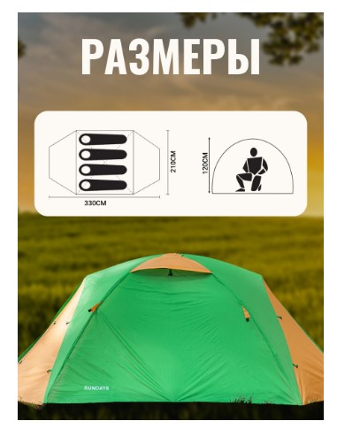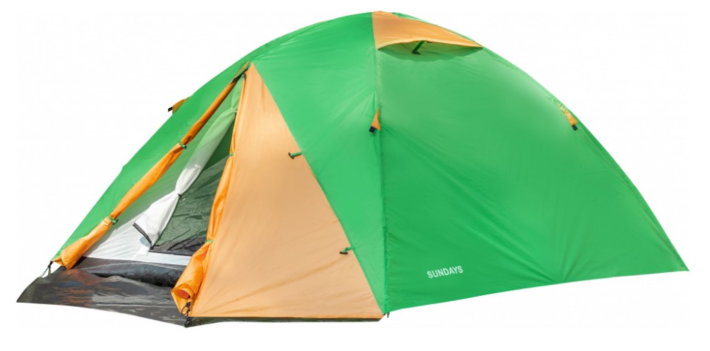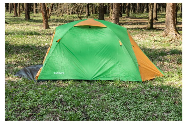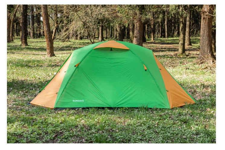 Палатка трехместная со спальным мешком Sundays ZC-TT009-3P v2 (зеленый/желтый) ZC-SB001 (синий)