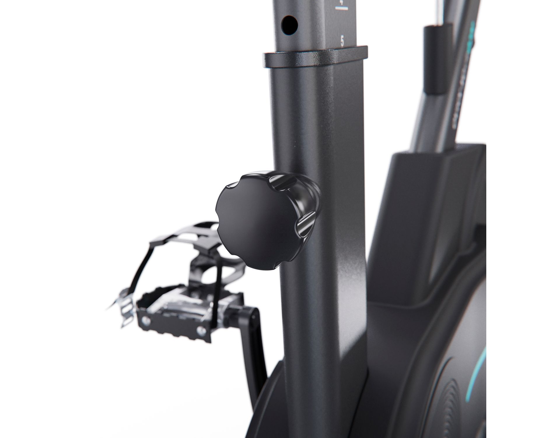 Тренажер оснащен маховиком весом 15 кг, обеспечивающим плавный и реалистичный ход. Эргономичная система регулировки позволяет точно настроить положение: сиденье регулируется по высоте, горизонтальному положению и углу наклона, а руль — по высоте. Объединенный руль с тремя видами хвата (Bullhorn, Butterfly, Aero) и нескользящим покрытием обеспечивает удобный и безопасный захват в любой позиции.Функциональность и особенности