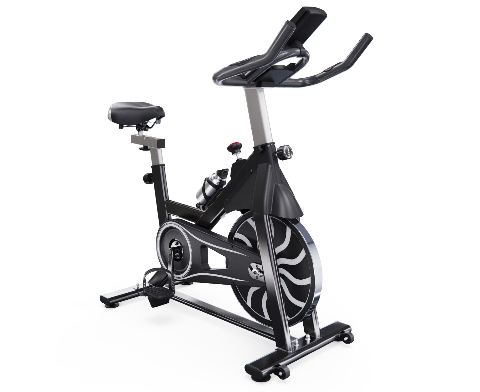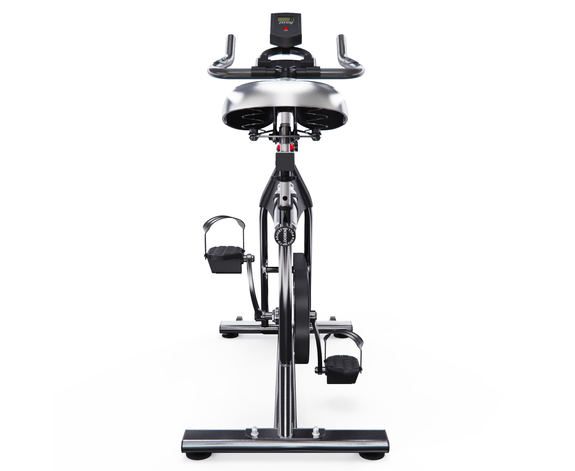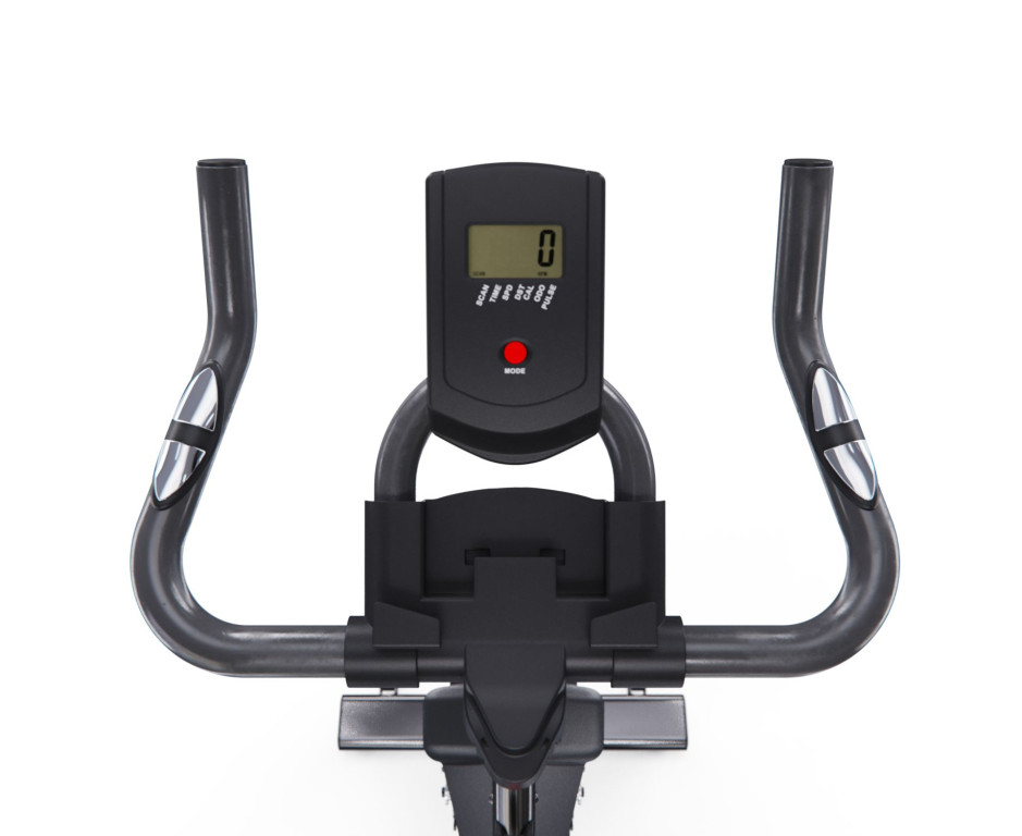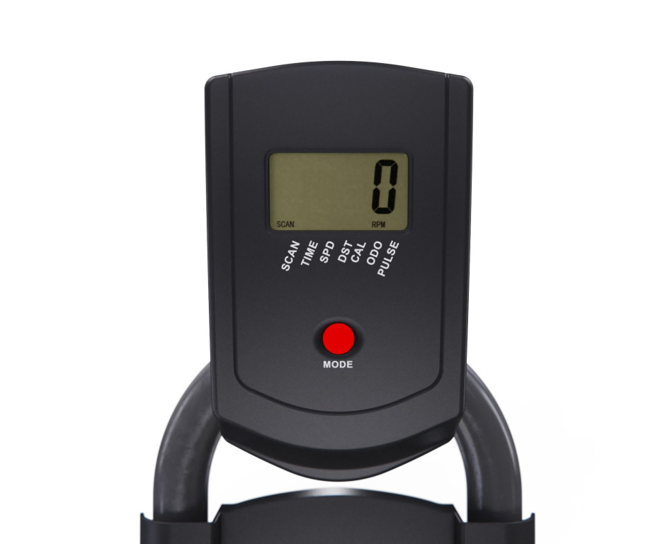 Монохромный LCD-дисплей отображает время, скорость, дистанцию, калории, одометр и пульс (измеряется сенсорными датчиками на поручнях). Для работы дисплея требуются 2 батарейки АА (в комплект не входят). Педали оснащены регулируемыми ремешками для фиксации стопы. В комплектацию входят подставка под планшет и бутылка для воды. Практичные детали: компенсаторы неровности пола и транспортировочные ролики.DFC PANANA — это функциональный и надёжный спин-байк для домашних кардиотренировок, сочетающий базовый мониторинг нагрузки, комфортную регулировку и практичное оснащение.