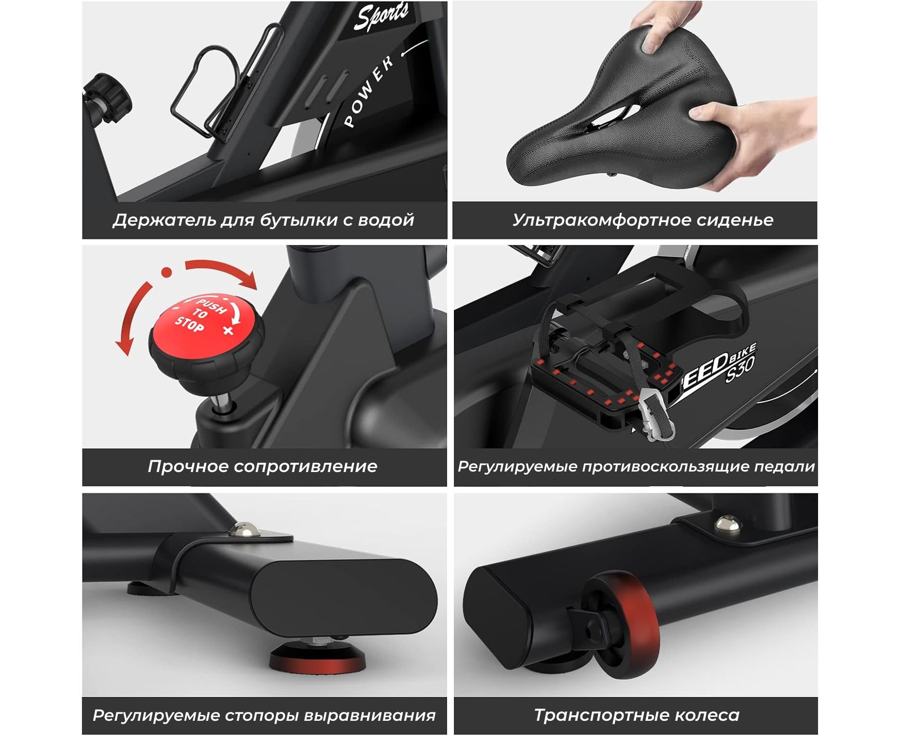 Спин-байк DFC PASYOU S30 чёрно-белого цвета — это современный тренажер для эффективных домашних кардиотренировок. Он рассчитан на пользователей весом до 135 кг и сочетает в себе надежную конструкцию, плавную систему нагрузки и удобную эргономику.