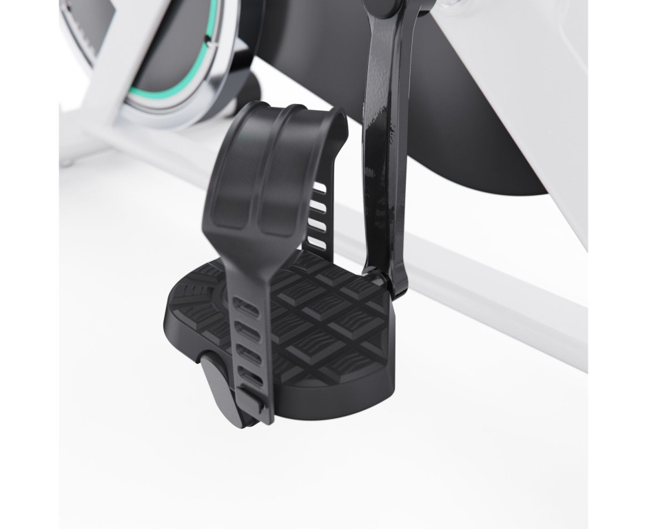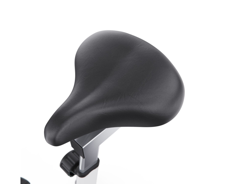 Тренажер оснащен механической колодочной системой нагрузки с бесступенчатой регулировкой сопротивления. Маховик с инерционным весом 12 кг обеспечивает плавный и реалистичный ход, имитирующий езду на шоссейном велосипеде. Сиденье регулируется по высоте (5 уровней), горизонтали и углу наклона, а руль — по высоте (5 уровней), что позволяет точно настроить посадку под индивидуальные параметры.