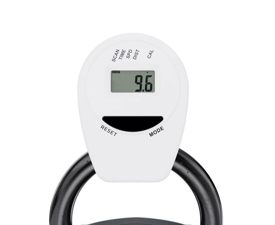 На LCD-дисплее отображаются ключевые параметры тренировки: время, скорость, дистанция, количество сожженных калорий и режим сканирования. Для работы дисплея требуются 2 батарейки типа ААА (не входят в комплект).