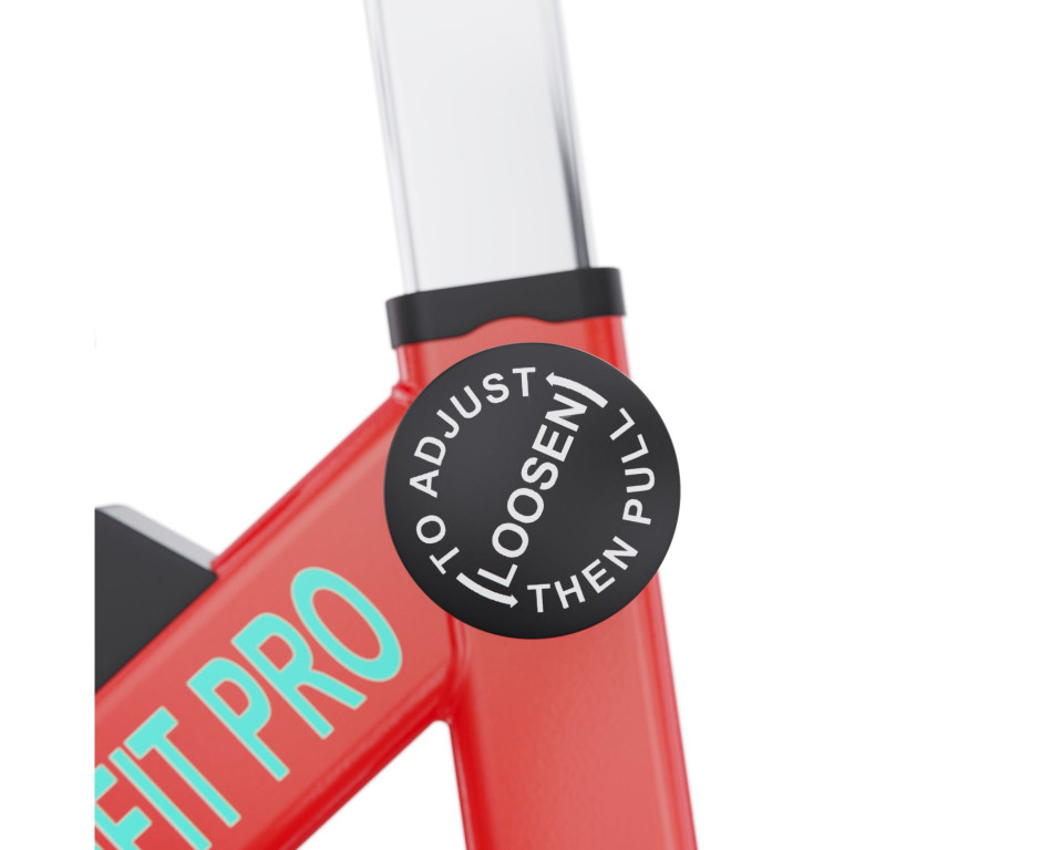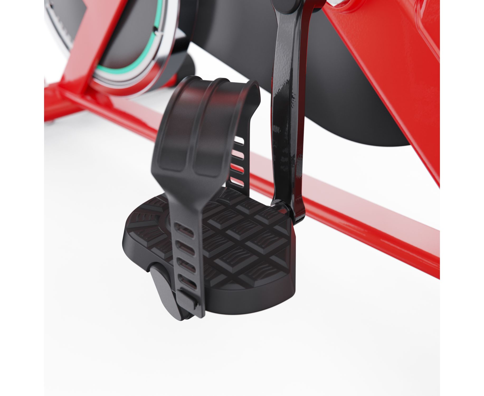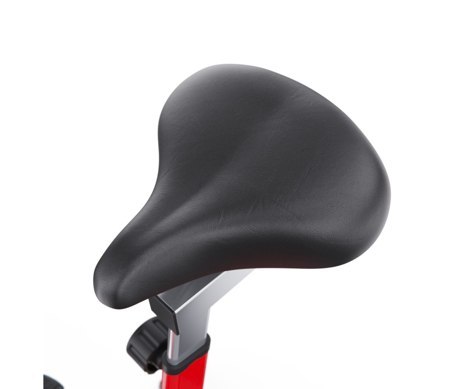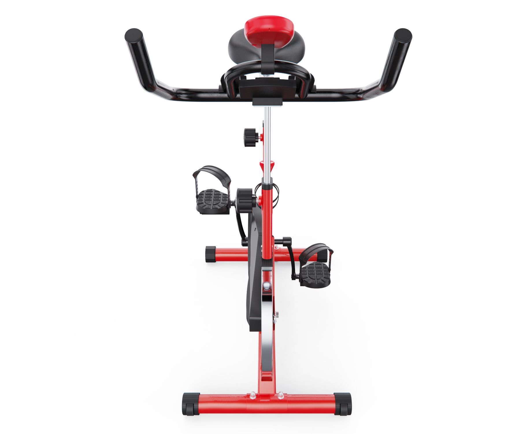 Конструкция тренажера включает прочную стальную раму, антискользящие ножки с компенсаторами неровности пола для устойчивости, а также транспортировочные ролики для легкого перемещения. Для комфорта во время занятий предусмотрены держатель для бутылки и подставка под планшет. Благодаря компактным габаритам (103×46×103–113,5 см) и динамичному красному цвету, тренажер станет стильным и эффективным центром домашних кардиотренировок, направленных на развитие выносливости и укрепление мышц ног и сердечно-сосудистой системы.