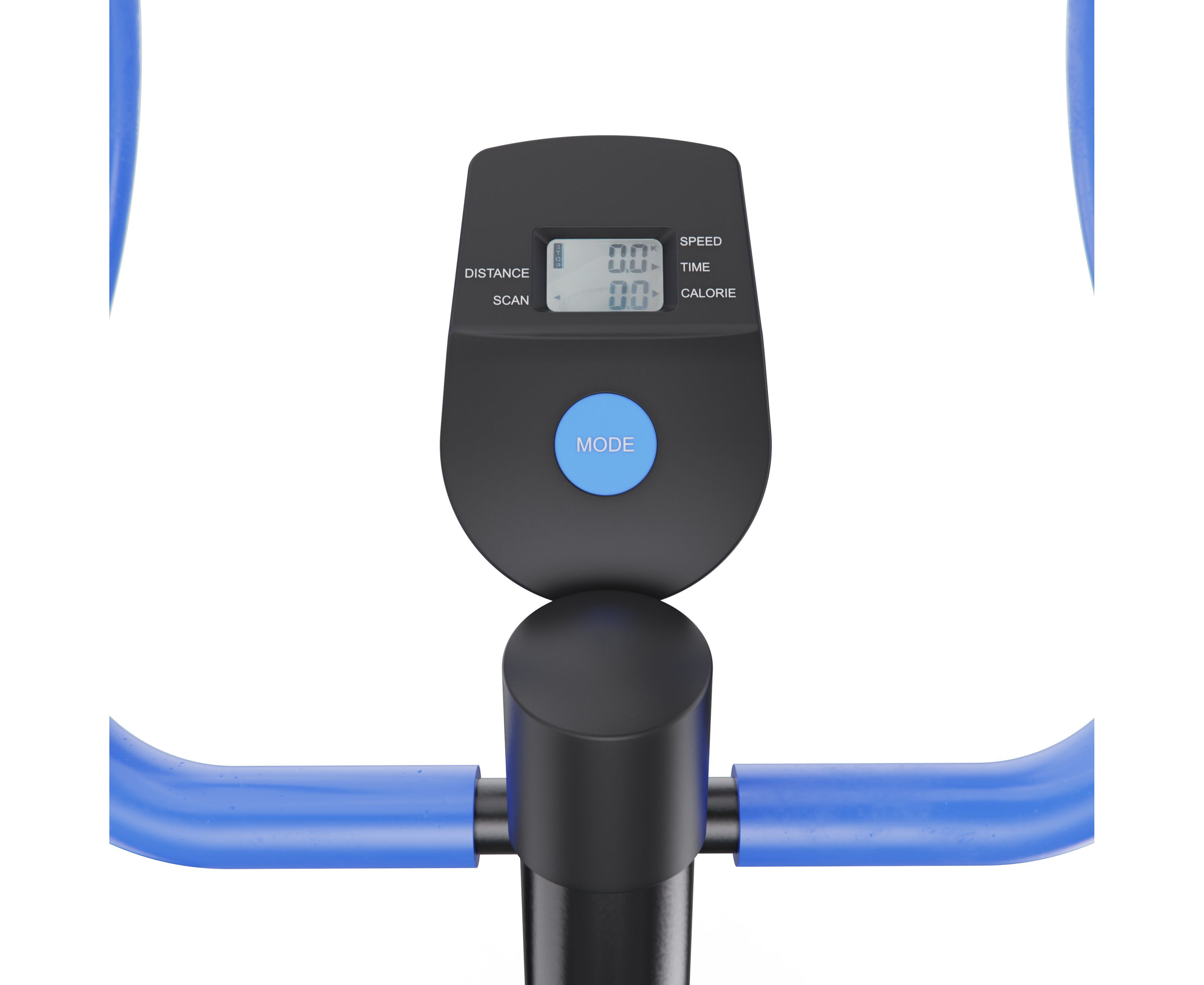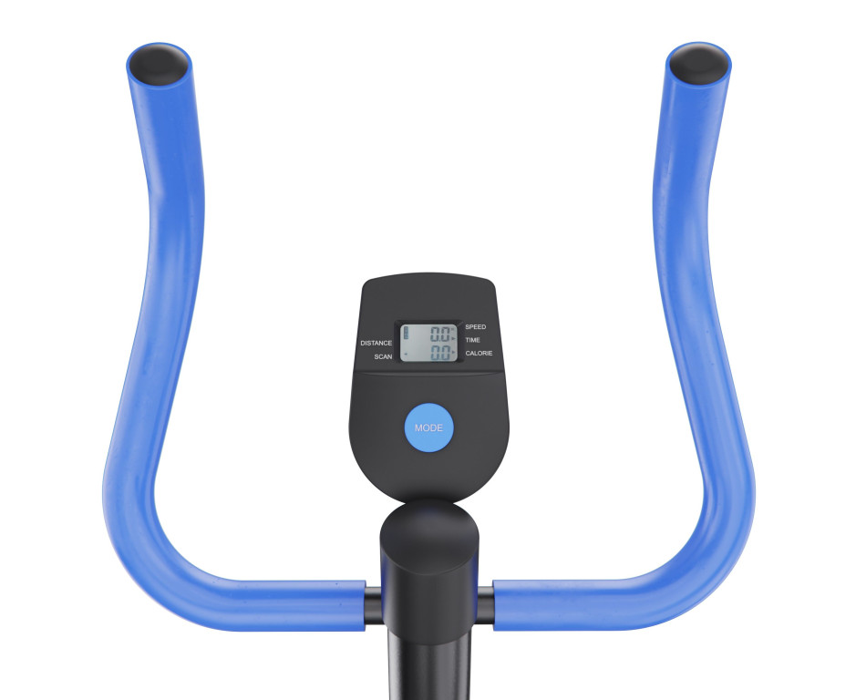 Монохромный LCD-дисплей отображает ключевые параметры тренировки: время, калории, дистанцию, скорость и режим сканирования. Для работы дисплея требуются 2 батарейки типа АА (1.5 В), которые не входят в комплект. Транспортировочные ролики облегчают перемещение тренажера, а прочная рама гарантирует устойчивость.WeR Sports — это функциональный спин-байк для результативных домашних тренировок, сочетающий базовый мониторинг, удобную регулировку и надежную конструкцию.