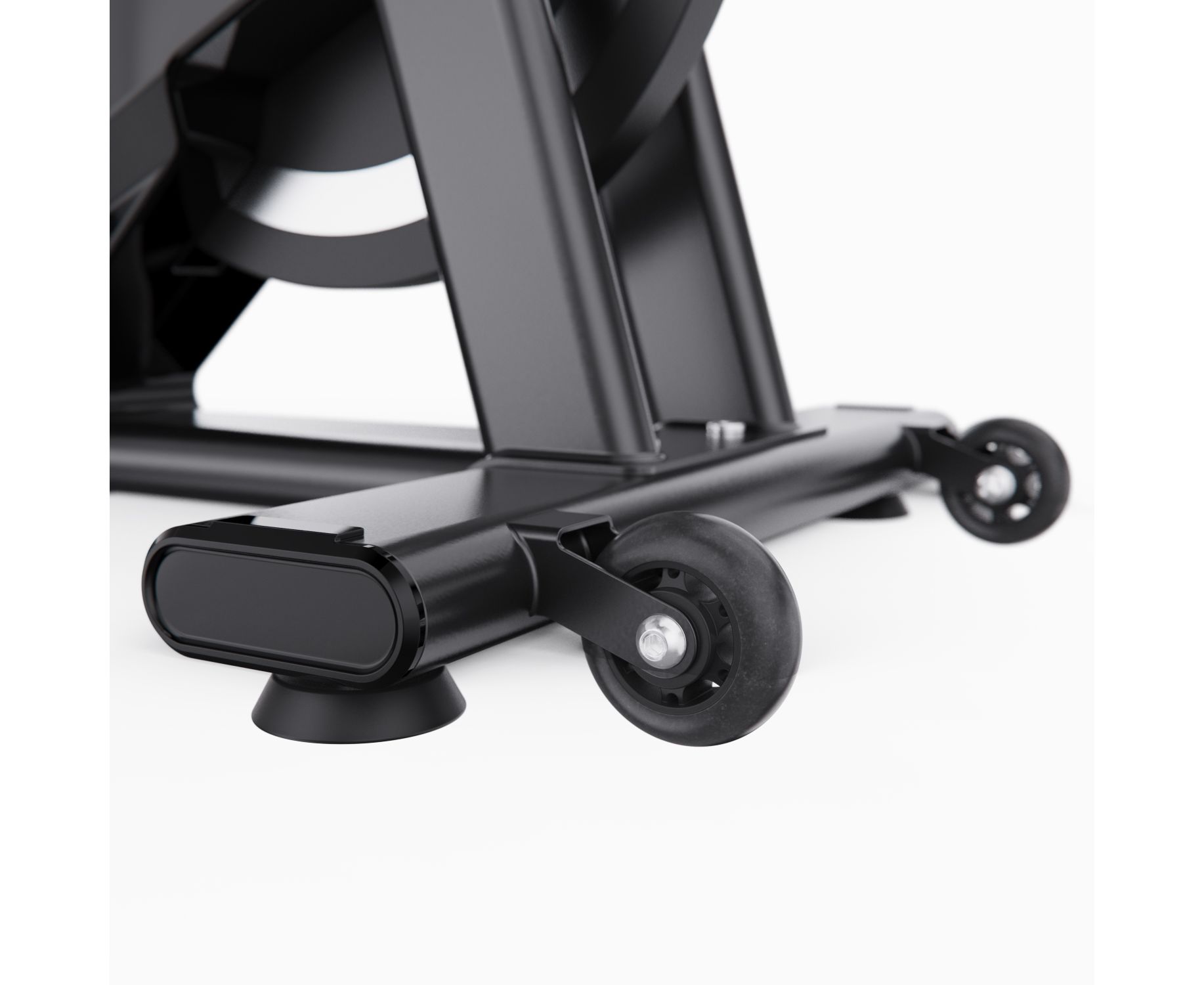 Тренажер оснащен комбинированной системой нагружения: магнитной с колодочным тормозом и массивным маховиком инерционного веса 30 кг, что обеспечивает исключительно плавный и бесшумный ход. Электронная регулировка предлагает 32 уровня сопротивления.Оснащение и эргономика