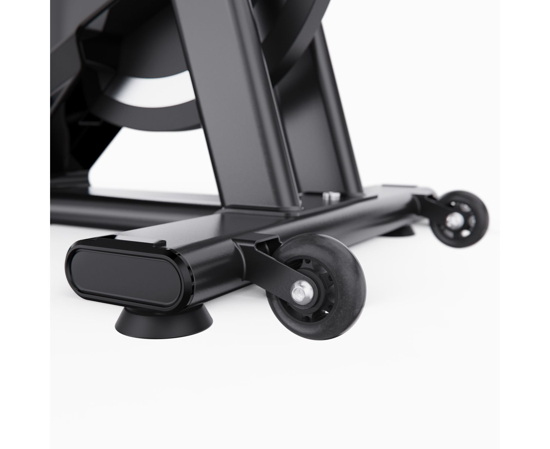 Тренажер оснащен комбинированной магнитной системой нагрузки с колодочным тормозом. Маховик с инерционным весом 30 кг обеспечивает плавный и бесшумный ход. Доступно 32 уровня электронной регулировки сопротивления. Модель имеет компактные габариты: 117×53×118 см.Эргономика и регулировка