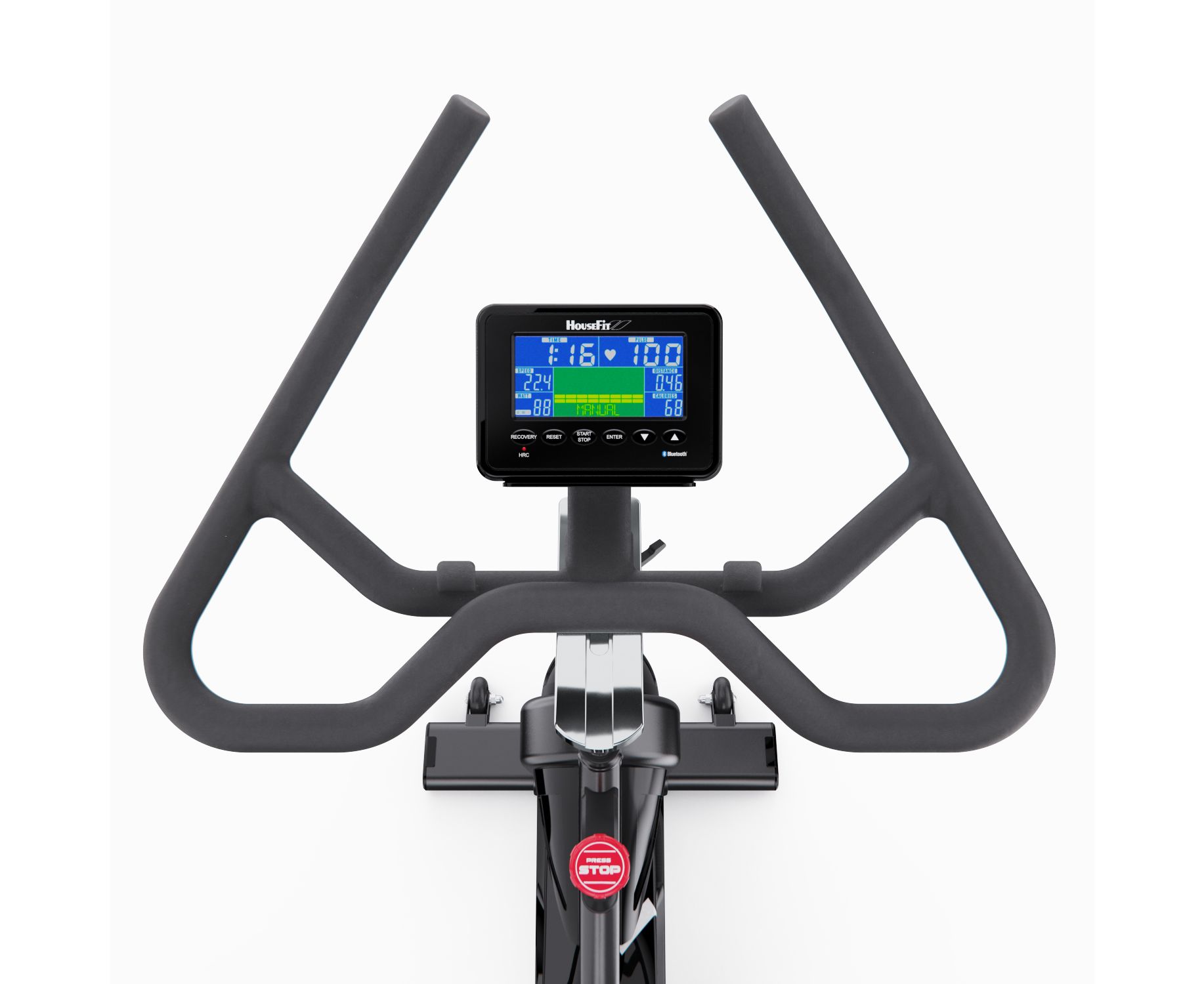 На LCD-дисплее с синей подсветкой отображаются скорость, время, дистанция, калории, мощность (Вт), каденс (об/мин) и пульс (для измерения требуется нагрудный ремень, не входит в комплект). Доступно 6 тренировочных программ. Ключевая особенность — поддержка Bluetooth и работа с приложением iConsole для отслеживания прогресса в реальном времени.Оснащение