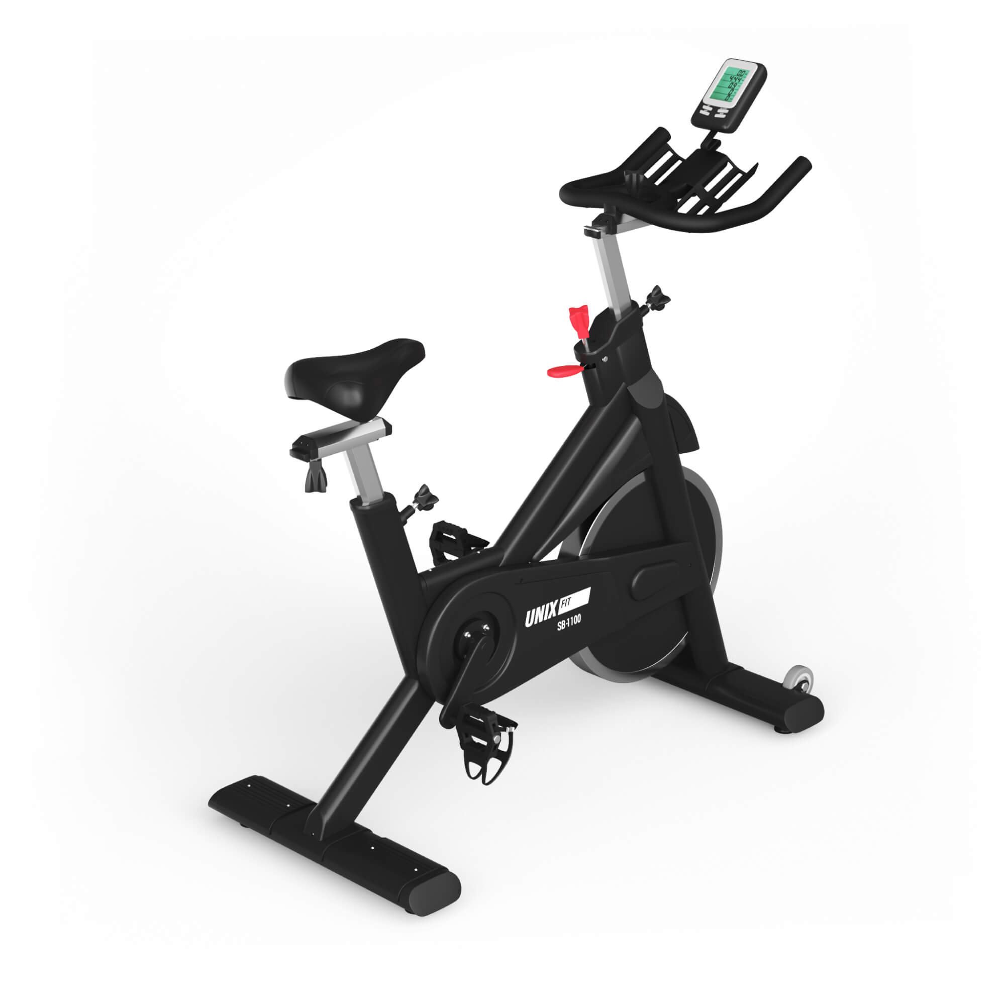 Педали с антискользящим покрытием и системой Toe Clip обеспечивают надежную фиксацию стопы и совместимы с профессиональной велообувью. Эргономичное регулируемое сиденье снижает нагрузку на поясницу, а встроенный механизм экстренного торможения гарантирует полную безопасность. Премиальная сборка на стальных подшипниках и точные датчики завершают образ качественного спортивного оборудования.UNIX Fit SB-1100 PRO — это профессиональный спин-байк, который сочетает мощную раму, реалистичную систему нагрузки и современные технологии для контроля эффективности. Он создан для тех, кто ценит надежность, точную адаптацию под свои цели и готовность оборудования к самым требовательным тренировкам.