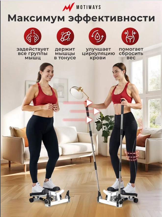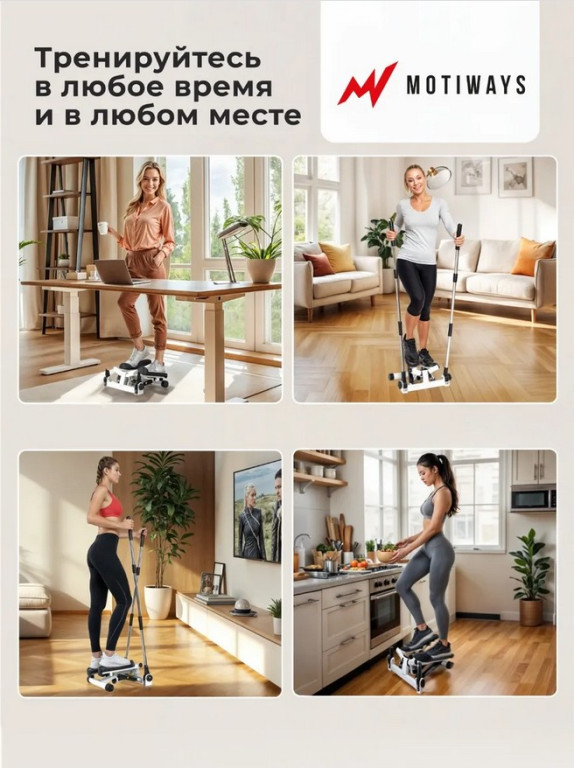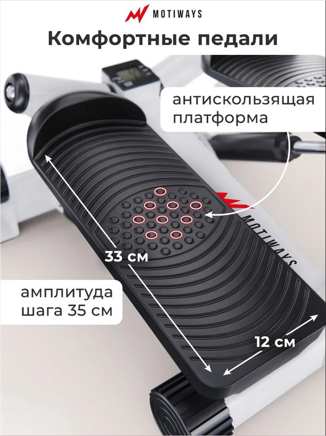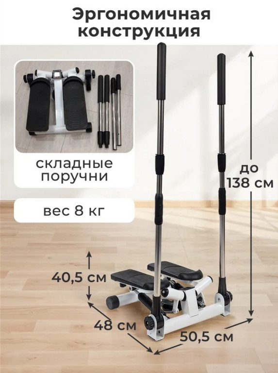 Удобные поручни: Обеспечивают дополнительную поддержку и безопасность во время тренировки, что особенно важно для начинающих. Вы можете заниматься с уверенностью, полностью сосредоточившись на качестве каждого движения.