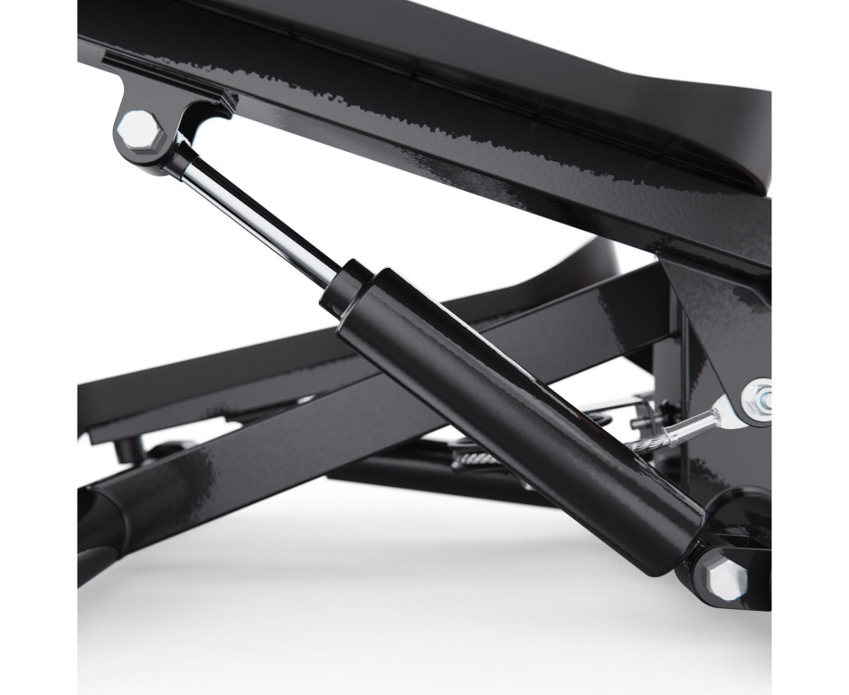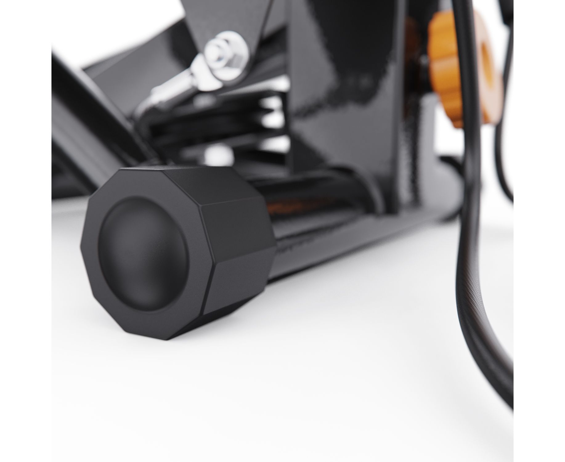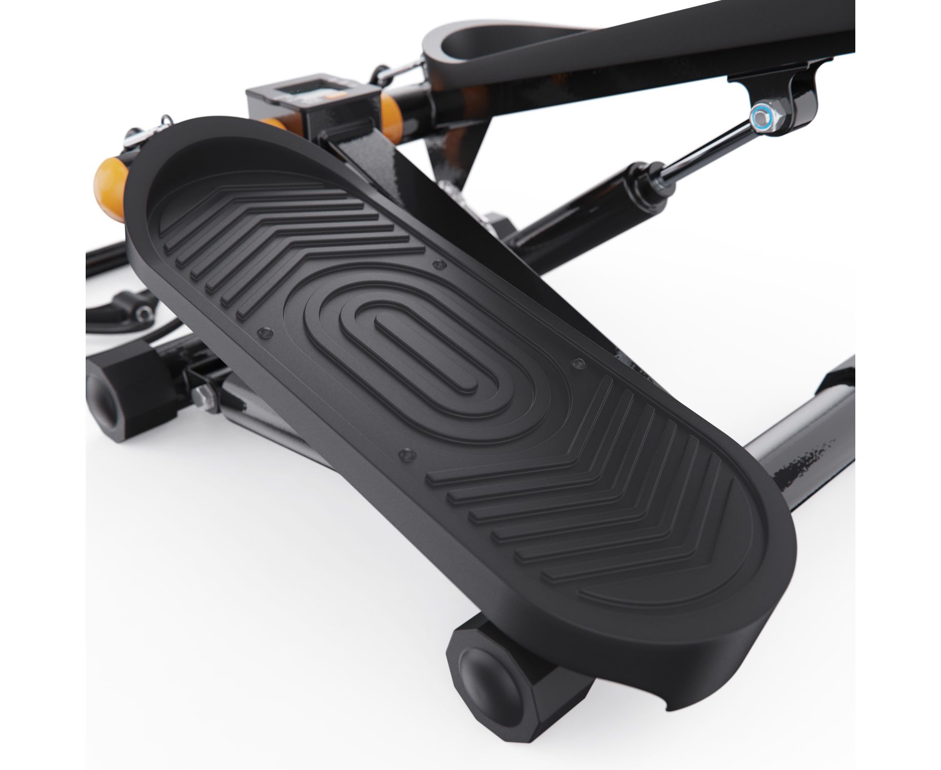 Гидравлическая система обеспечивает плавный и тихий ход. Механическая регулировка позволяет менять уровень нагрузки. Максимальный вес пользователя — 110 кг. Широкие педали 30 х 10,5 см с рельефным покрытием и компенсаторы неровностей пола делают тренировку устойчивой и безопасной.