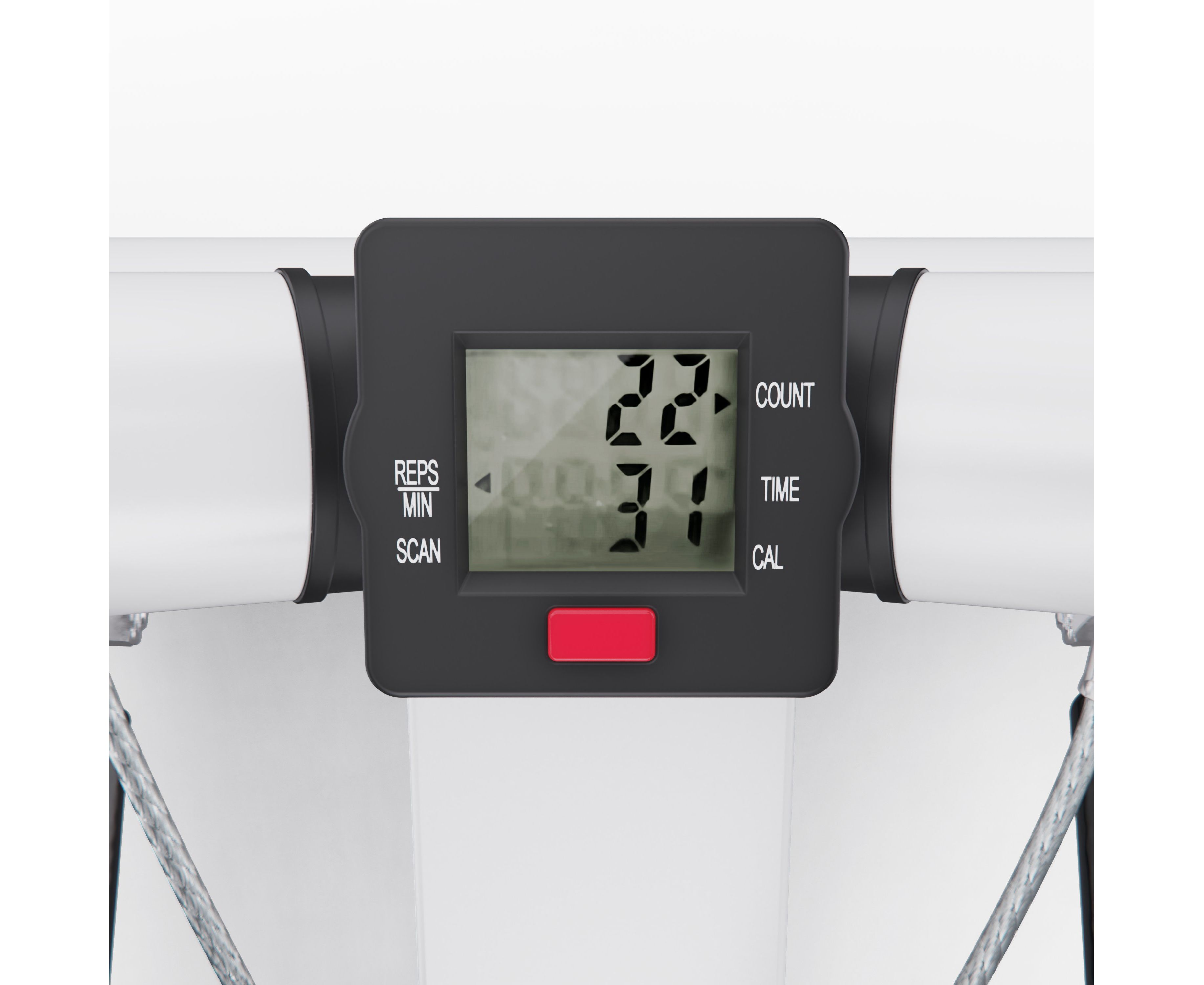 LCD-дисплей отображает время, количество шагов, темп и сожжённые калории. Питание от батарейки LR44 в комплекте. Также в комплекте смазка для обслуживания.