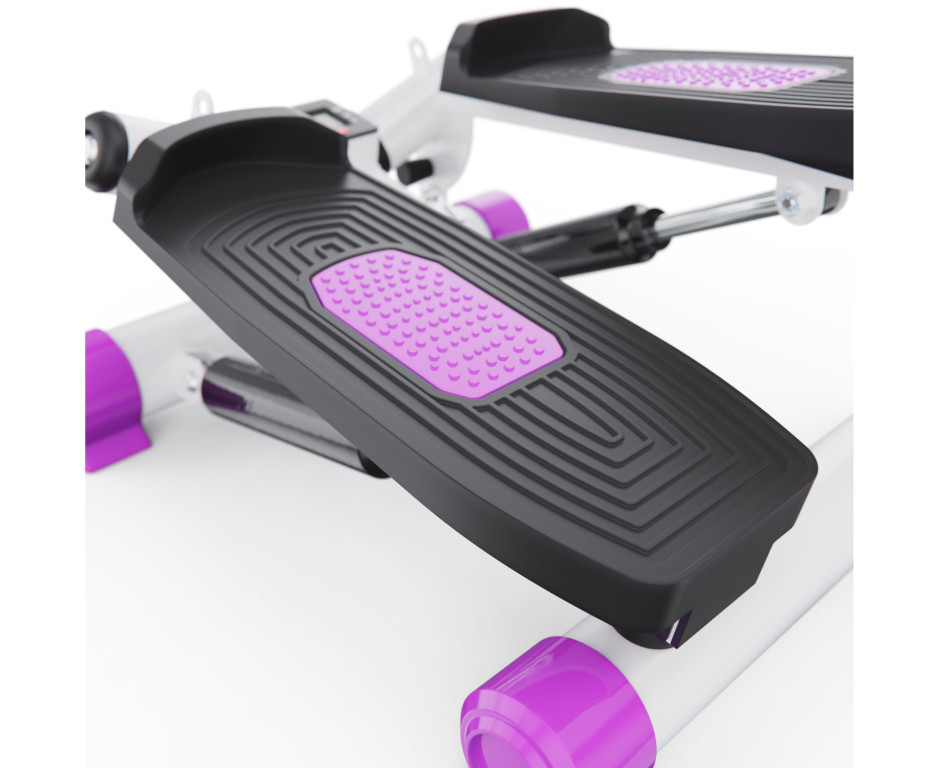 Максимальный вес пользователя — 100 кг. Гидравлическая система обеспечивает плавный и тихий ход педалей. Уровень нагрузки регулируется механически, высота подъёма педалей настраивается. Рифлёные педали с небольшим расстоянием между ними способствуют правильной постановке ног и снижают нагрузку на суставы.