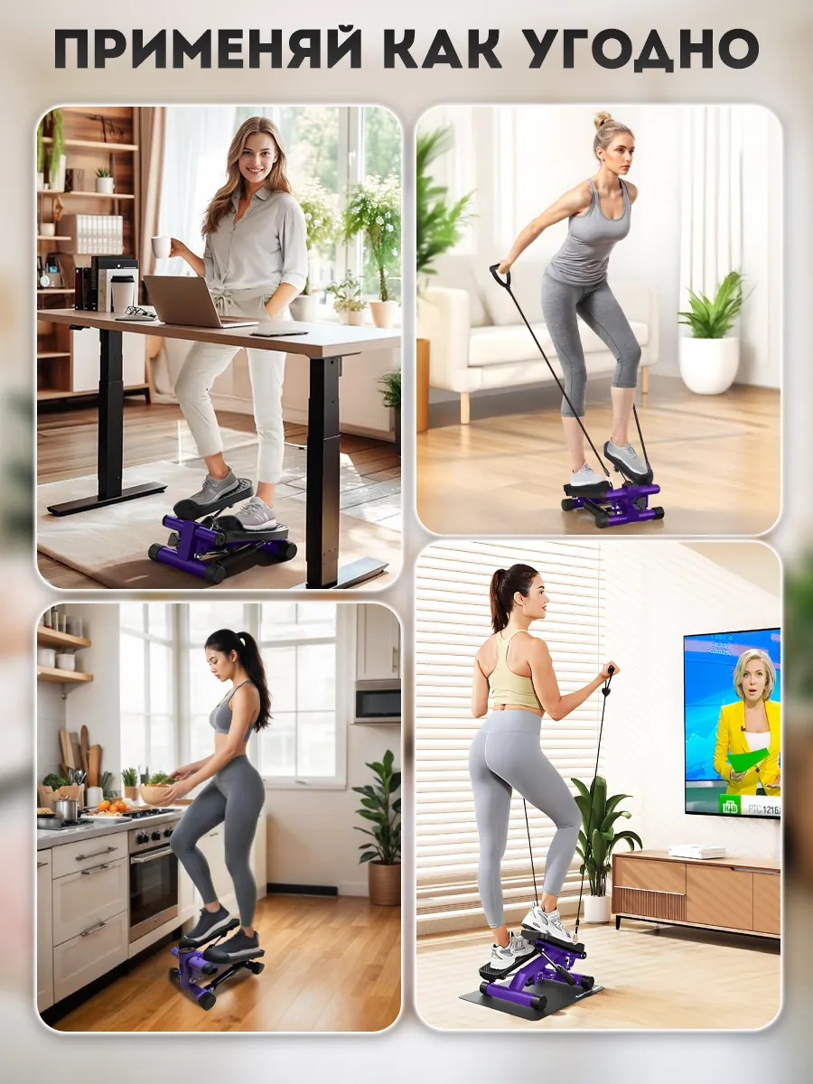 - Компактность и удобство хранения: мини-степпер занимает минимум места и легко помещается под кроватью или в шкафу.