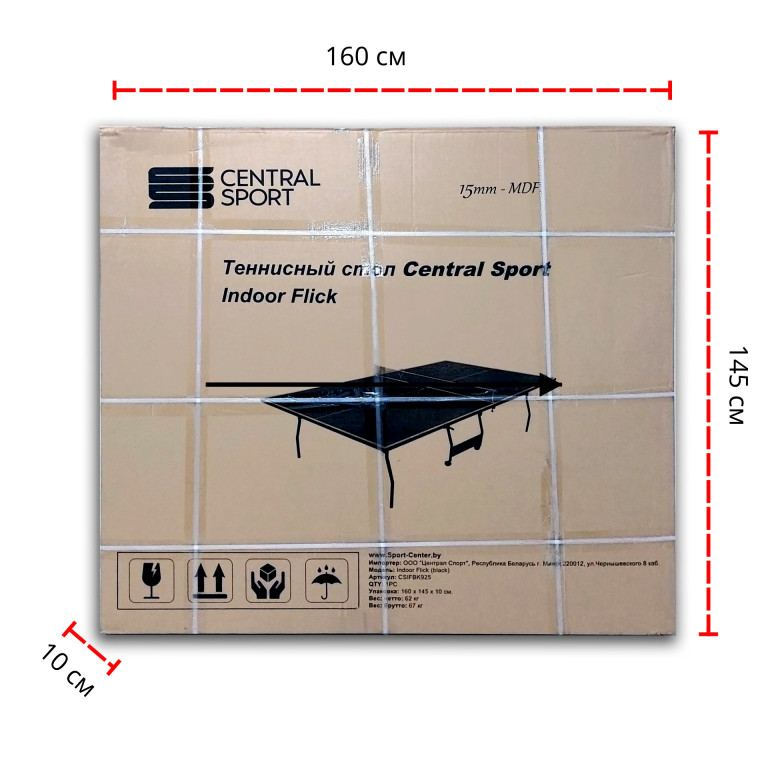 В комплектацию теннисного стола Central Sport (Indoor Flick black) входит: 1 сетка, 2 ракетки и 3 мяча.ХарактеристикиВидДля закрытых помещений КлассЛюбительский Ролики75мм со стопором ?Антибликовое покрытиеПри наличии антиблика, на солнце стол не будет отсвечиватьЕсть Толщина столешницы15 мм Материал столешницыMDF-плита Цвет столешницыСиний Игра в одиночкуДа СеткаЕсть РамаУсиленная (рама 10x20 мм и 20х20 мм) толщина 1,0 мм Цвет рамыЧерный ?Транспортировочные роликиДля перемещения тренажера в место храненияЕсть ?Компенсаторы неровности полаРегулировка тренажера при невроной поверхностиЕсть КонструкцияСкладная Комплектациясетка нейлон, 2 ракетки, 3 шарика НазначениеДомашнее ОсобенностьРакетки подарочные начального уровня. Фиксатор колесЕсть Гарантия на столешницу1 год Габариты274x152,5x76 см Размер упаковки в см (Д*Ш*В)160 х 145 х 10 см Вес изделия кг56,4 Вес в упаковке кг61,6 Гарантия1 год ПроизводительКитай ИмпортерООО "Централ Спорт" г. Минск 220012, ул.Чернышевского 8 каб. 23 -