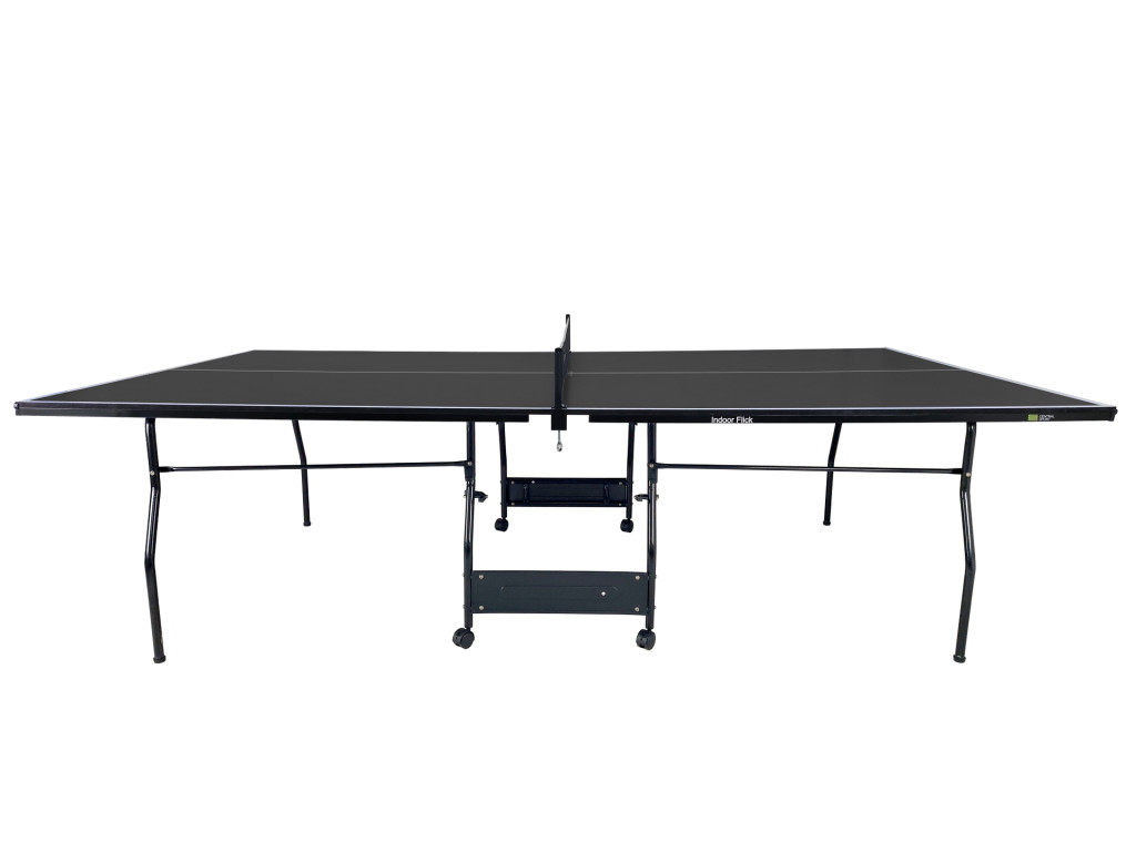 Модель Indoor Flick (green) относится к любительской линейке теннисных столов, для использования только в помещениях. Преимущество этого стола в плотной столешнице изготовленной из MDF, которая гораздо плотнее чем ЛДСП. такой материал прослужит дольше и отскок мяча имеет 23 см, что является идеальным значением в этом виде спорта. К достоинствам добавим: металлический защитный кант и специальная пластиковая защита углов, это предотвратит повреждения кромки и торца щита от ударов, и других физических воздействий. Ролики имеют стопор, для фиксации стола, предотвращающий скатывание стола.