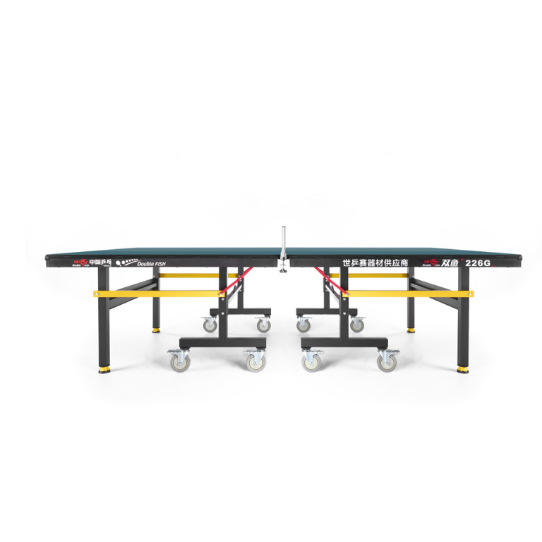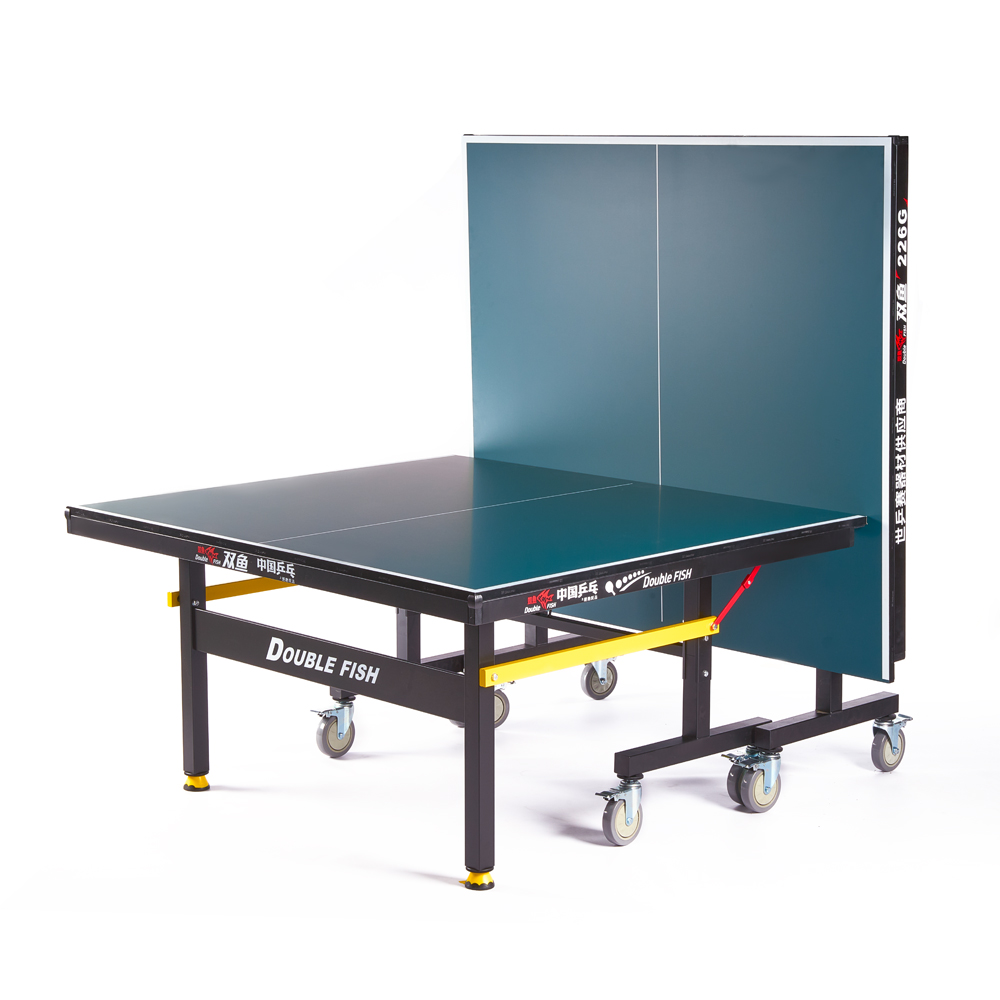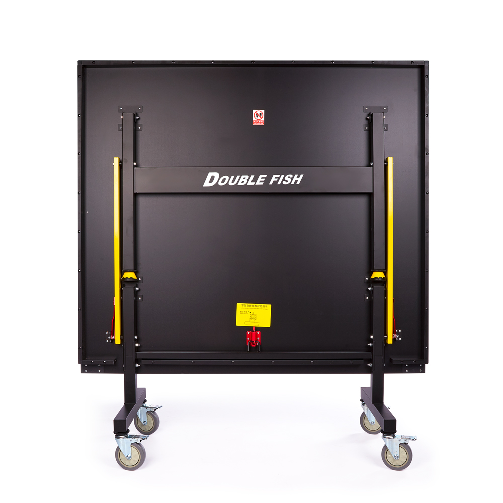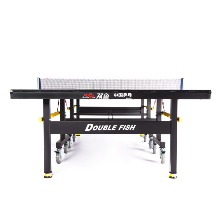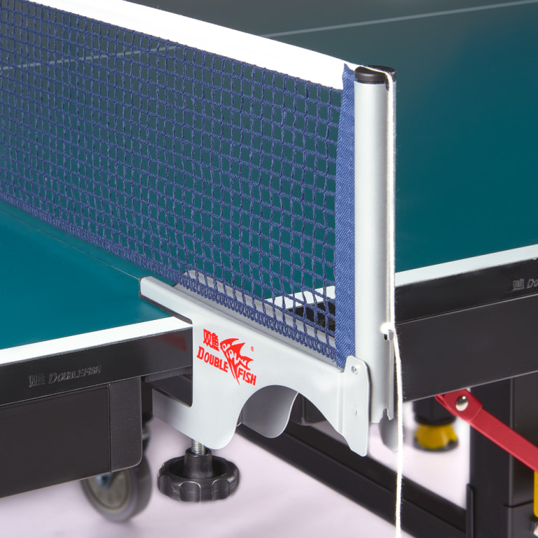 Теннисный стол Double Fish 203M-1 оснащен игровой поверхностью из МДФ толщиной 18 мм, гарантирующей отличный отскок мяча, а его конструкция состоит из двух отдельных половин, которые легко складываются для компактного хранения и удобства перемещения на восьми колесах диаметром 75 мм с надежными стопорами, обеспечивающими мобильность и устойчивость. Надежность и стабильность достигаются благодаря раме из стальных трубок 50х20 мм, дополнительной передней планке и регулируемым по высоте ножкам профиля 40х40 мм, при этом стол поставляется в практически готовом к игре виде — нужно лишь установить колеса, а встроенная система блокировки надежно фиксирует его в сложенном состоянии для безопасного хранения, и, конечно, в комплект уже входят сетка с креплениями-стойками.ХарактеристикиВид