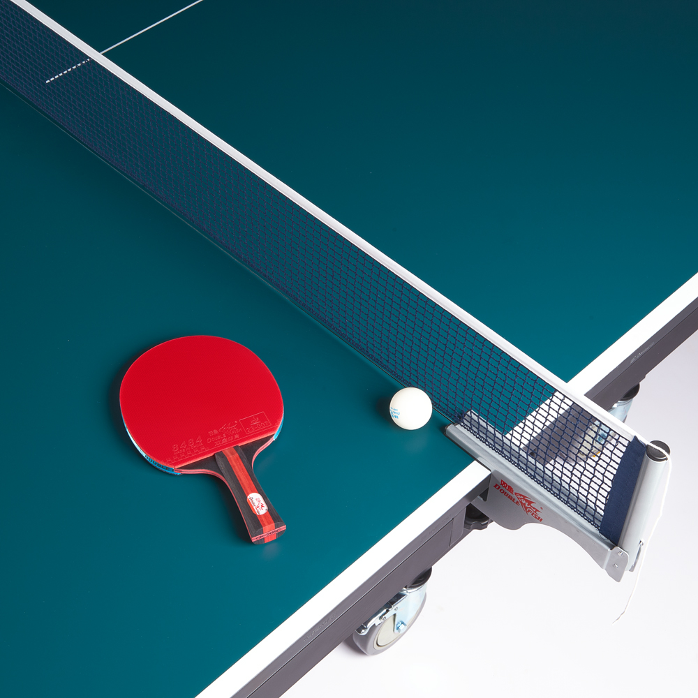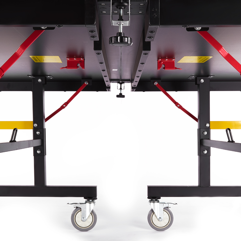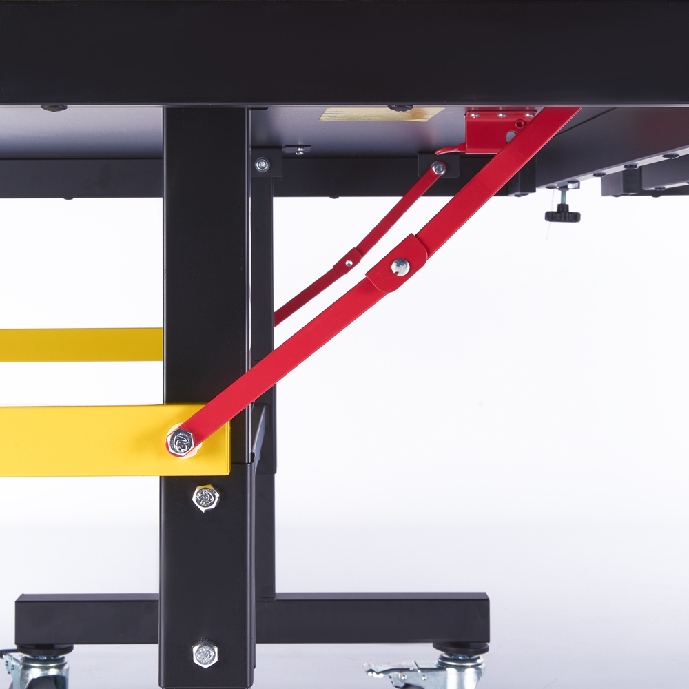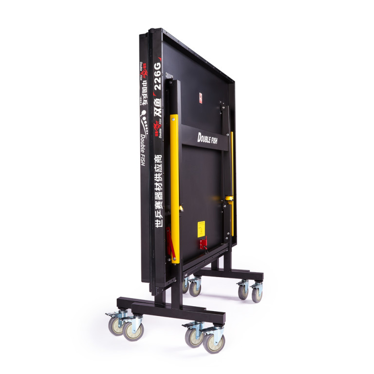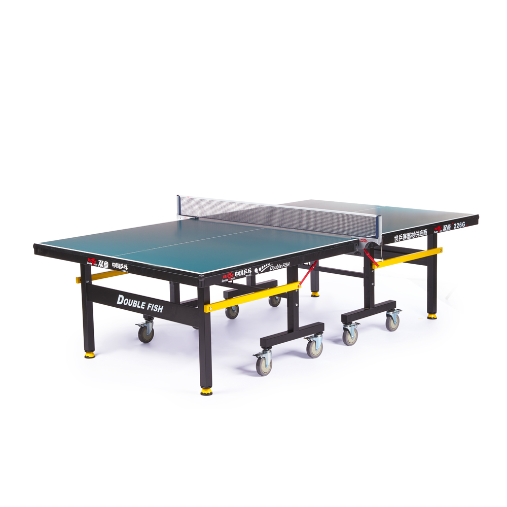 Теннисный стол Double Fish 203M-1 оснащен игровой поверхностью из МДФ толщиной 18 мм, гарантирующей отличный отскок мяча, а его конструкция состоит из двух отдельных половин, которые легко складываются для компактного хранения и удобства перемещения на восьми колесах диаметром 75 мм с надежными стопорами, обеспечивающими мобильность и устойчивость. Надежность и стабильность достигаются благодаря раме из стальных трубок 50х20 мм, дополнительной передней планке и регулируемым по высоте ножкам профиля 40х40 мм, при этом стол поставляется в практически готовом к игре виде — нужно лишь установить колеса, а встроенная система блокировки надежно фиксирует его в сложенном состоянии для безопасного хранения, и, конечно, в комплект уже входят сетка с креплениями-стойками.ХарактеристикиВид