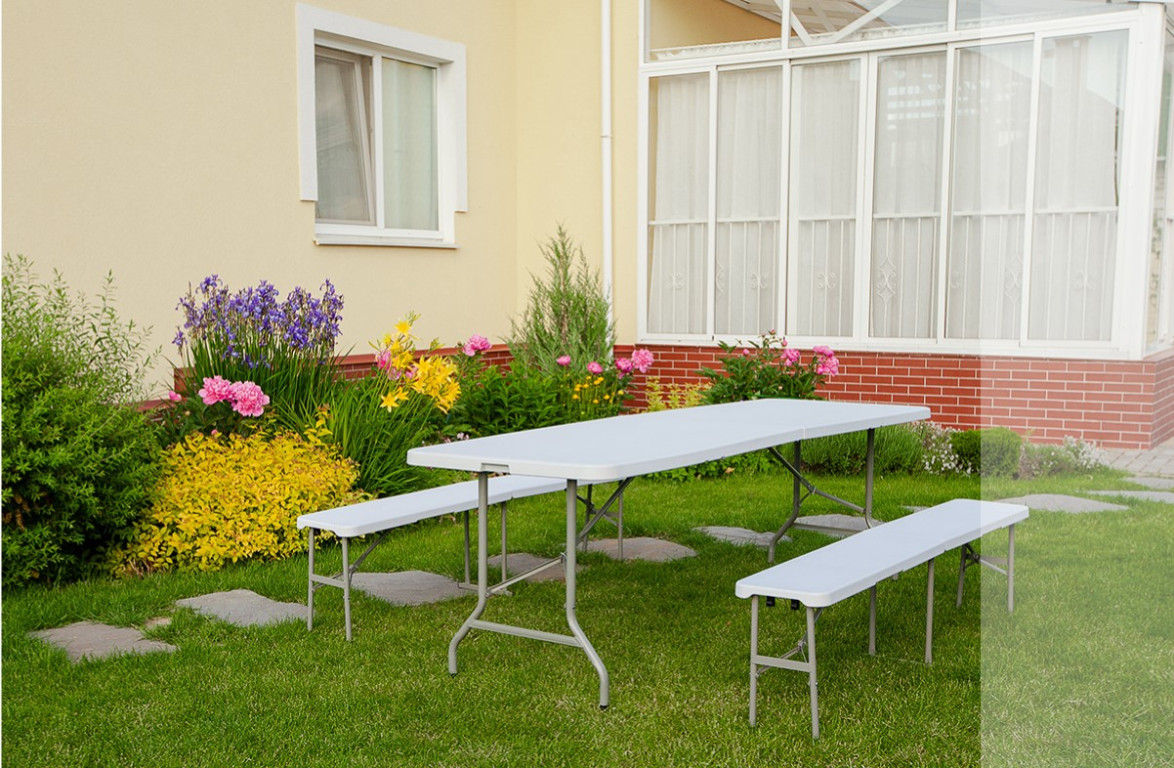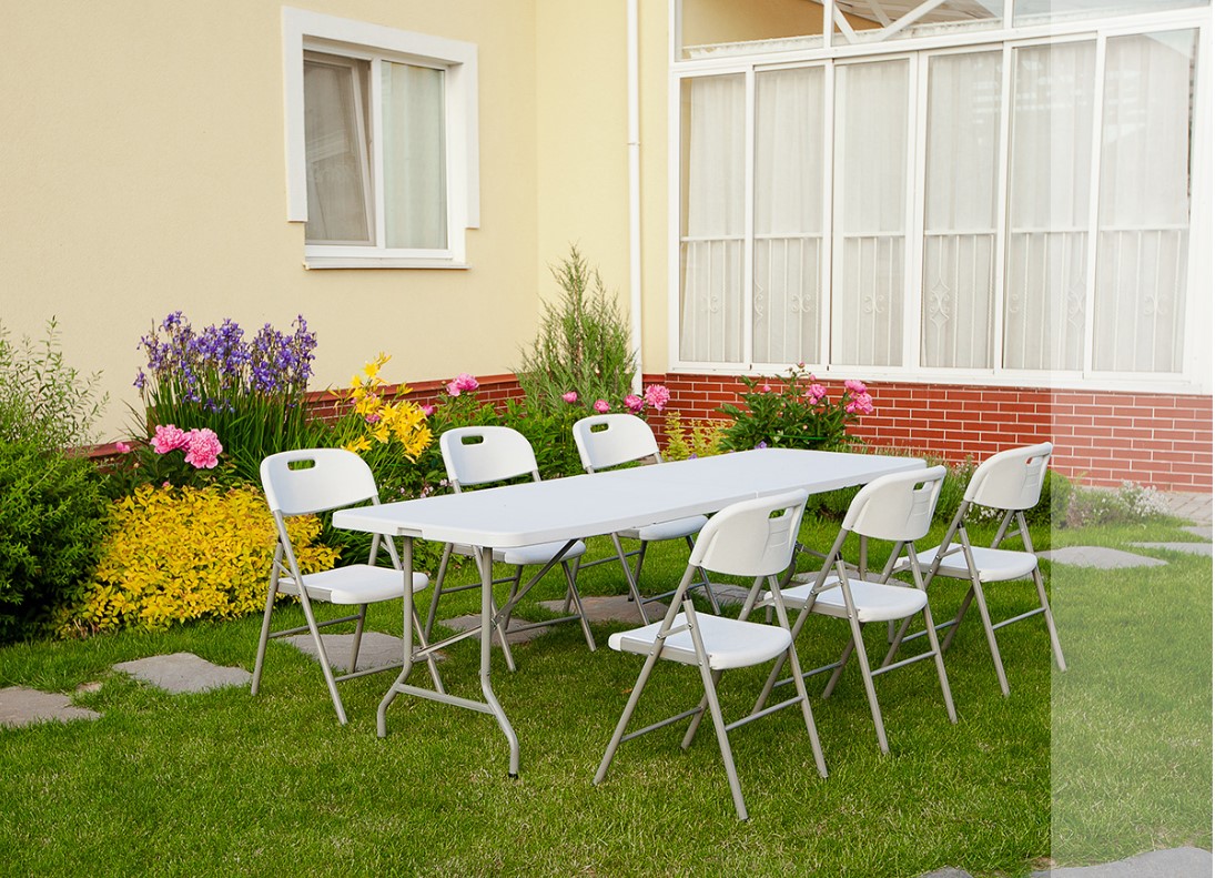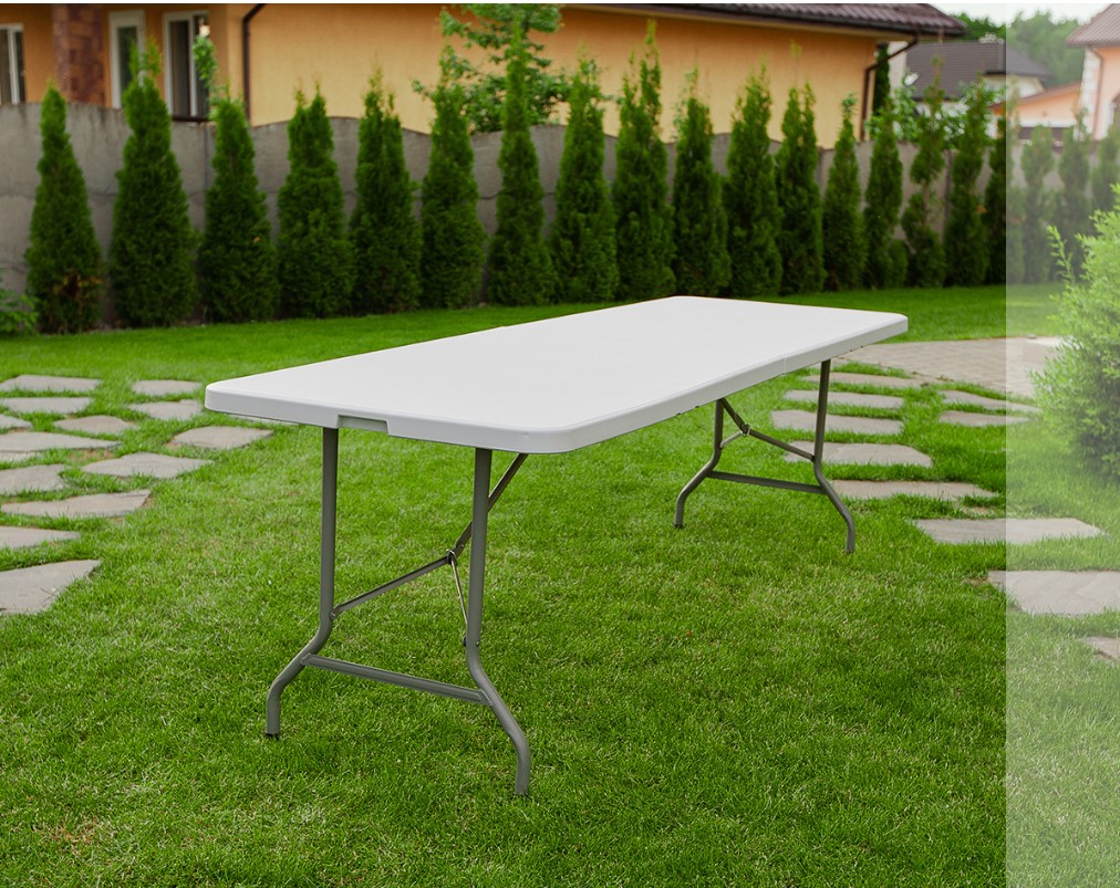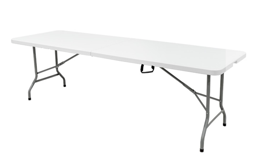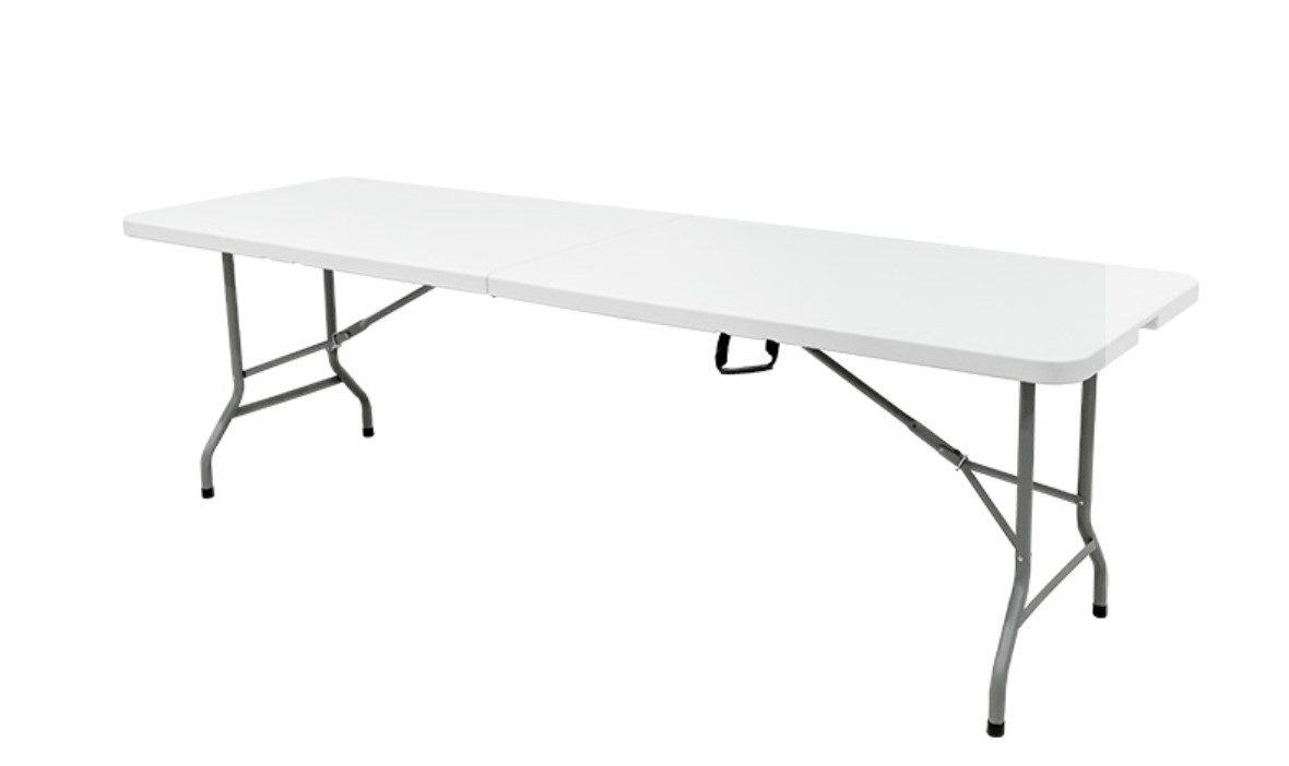 Вместительный складной стол длиной 244 см с усиленным стальным каркасом и столешницей, рассчитанной на нагрузку до 150 кг. Белая поверхность придает столу эстетичный и универсальный вид, который впишется в любой формат мероприятия. Для удобства транспортировки предусмотрена ручка, а компактная складная конструкция позволяет легко хранить стол даже в ограниченном пространстве. Идеальное решение для кейтеринга, выездных событий, пикников или временной организации зон отдыха.ХарактеристикиТип