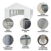 Каркас: Наружные стойки 30х30х0,5мм, Внутренние стойки 25х25х0,5мм, Поперечные перекладины 13х25х0,5мм