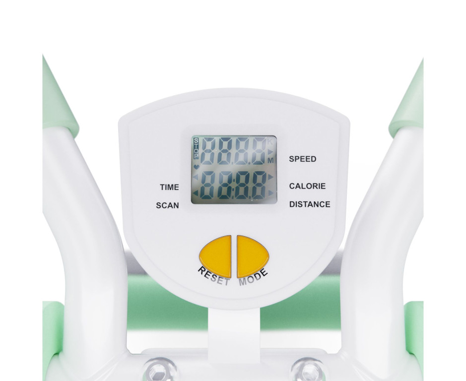 Тренажёр оборудован встроенным монохромным LCD-дисплеем для отслеживания результатов: время тренировки, количество повторений, сожжённые калории и частота движений. Дисплей работает от 1 батарейки AAA (входит в комплект).