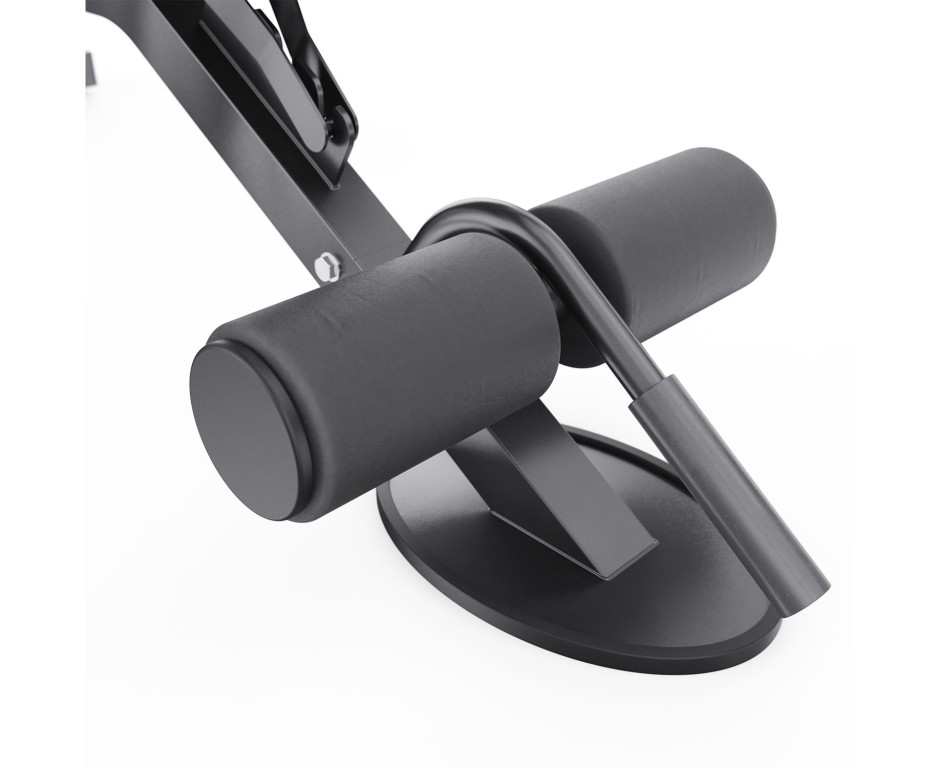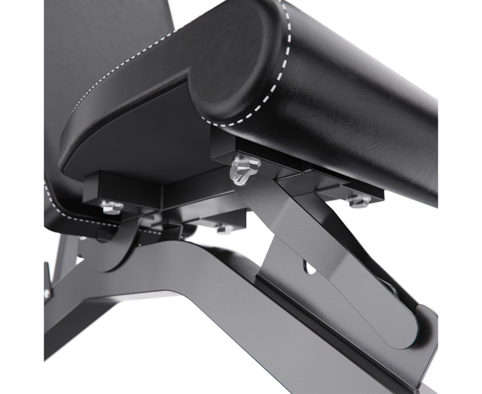 Ключевыми особенностями являются регулируемая спинка с фиксацией в 8 положениях, позволяющая выполнять жимы под разными углами, и сиденье с 3 уровнями настройки для оптимального комфорта. Эргономичные валики для ног из мягкого материала предотвращают скольжение во время упражнений. Покрытие из экокожи и набивка толщиной 60 мм обеспечивают комфорт и поддержку, а уникальная форма сиденья помогает снизить мышечную усталость. Нескользящие ножки гарантируют безопасность и устойчивость тренажёра во время интенсивных тренировок.
