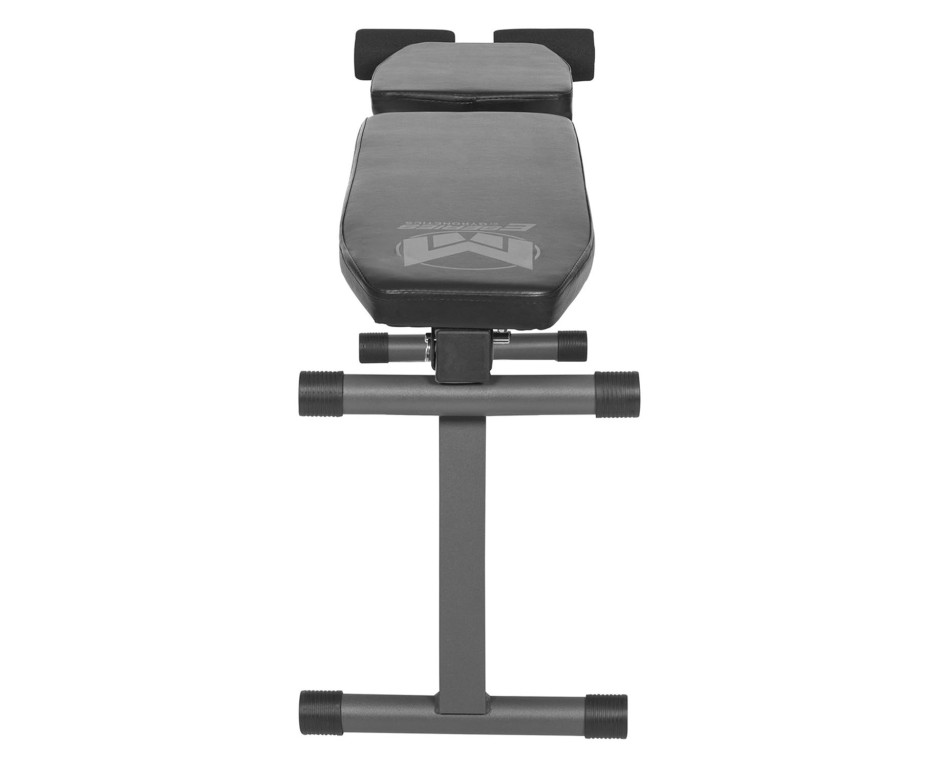 Тренажёр рассчитан на максимальную нагрузку 100 кг. Его ключевой особенностью является спинка с 4 уровнями наклона, включая отрицательный угол, что позволяет варьировать нагрузку и эффективно прорабатывать различные группы мышц пресса, груди, плеч и рук. Мягкие валики для фиксации ног регулируются в 3 положениях, обеспечивая комфорт и устойчивость.
