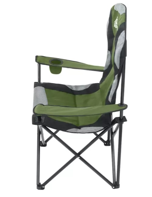 Складное туристическое кресло RSP Royal в оливково-зелёном цвете — это осознанный выбор в пользу комфорта на выездном отдыхе. Здесь нет задачи уложиться в минимальный вес, зато есть всё, чтобы чувствовать себя удобно в лагере, у машины, на рыбалке или на даче. Кресло рассчитано на нагрузку до 140 кг, высота сиденья 50 см, а в разложенном виде оно занимает 109х58х58 см — это полноценное место для отдыха, где не придётся постоянно менять позу. Подлокотники регулируются по высоте, так что подстроить кресло под себя несложно. На одном из них есть подстаканник — мелочь, а приятно. В комплекте идёт тканевый чехол для переноски и хранения. Словом, это тот случай, когда отдых на природе не требует компромиссов.ХарактеристикиТип