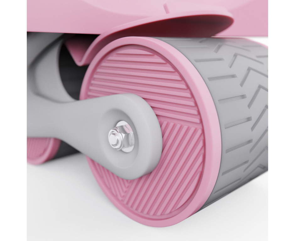 Тренажер для пресса DFC JOROTO AR30P розового цвета — ролик для дома, который не требует специальных навыков. Встал на колени, взялся за ручки и поехал. Широкие колёса не дают заваливаться в стороны, движение идёт ровно и мягко.