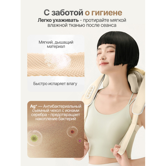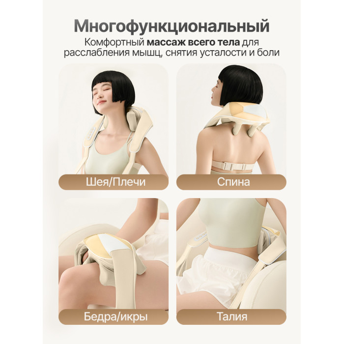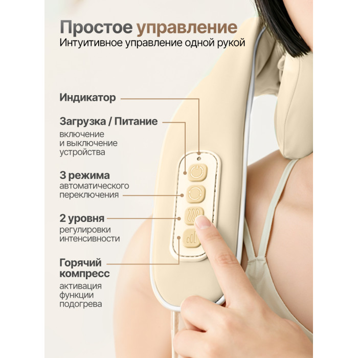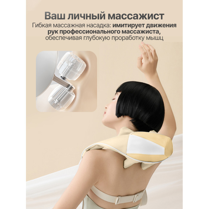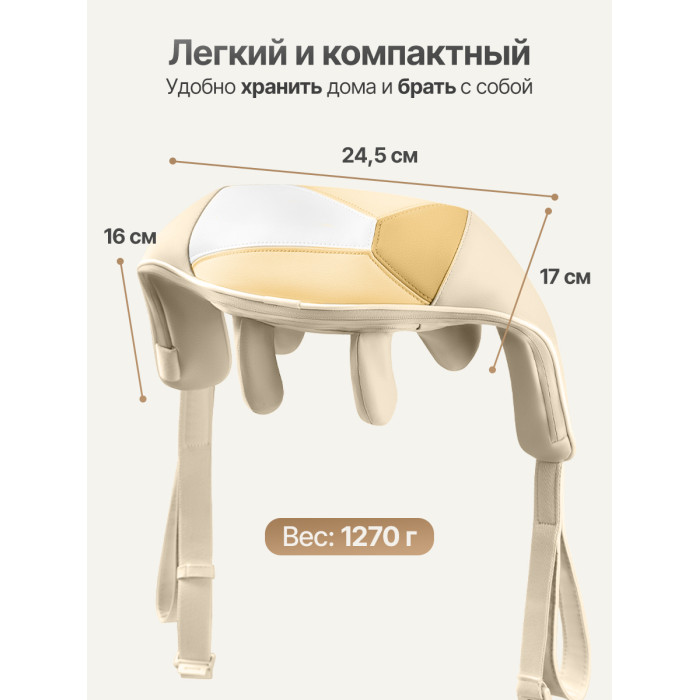 Вибромассажер DFC LAZYCLOUD VM-MA30 бежевого цвета — это легкий и удобный портативный массажер для домашнего использования, предназначенный для расслабления, снятия напряжения и улучшения кровообращения в области плеч и шеи после рабочего дня или физических нагрузок.