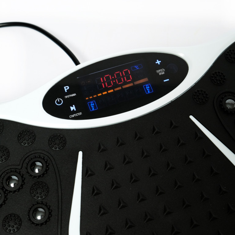 Тренажер имеет панель управления для регулировки интенсивности вибраций. Противоскользящее покрытие и резиновые ножки обеспечивают безопасность и защиту пола. Устройство может использоваться как виброплатформа, обычная степ-платформа для упражнений и в комбинации с эспандерами для тренировки верхней части тела.Применение и ограничения: